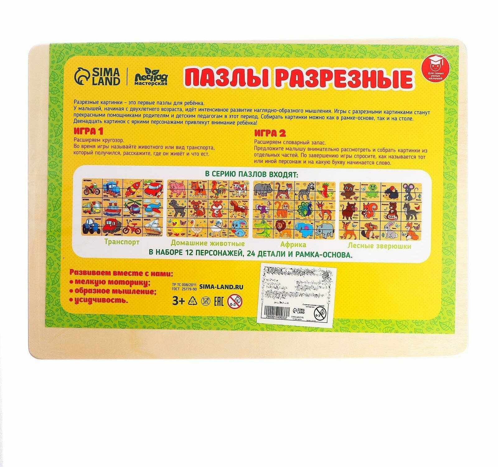 Рамка-пазл Лесная мастерская "Домашние животные", 24 элемента (1740033)