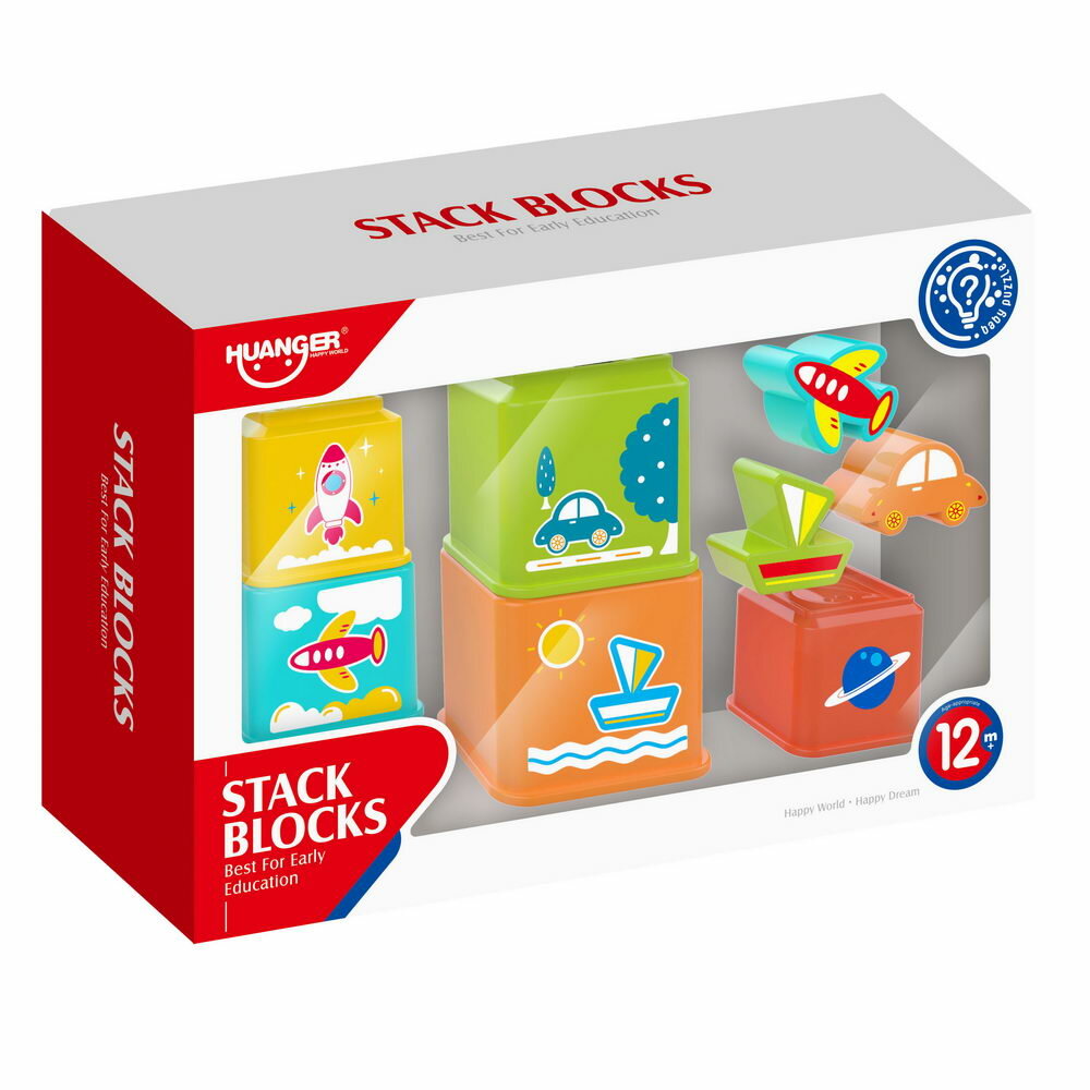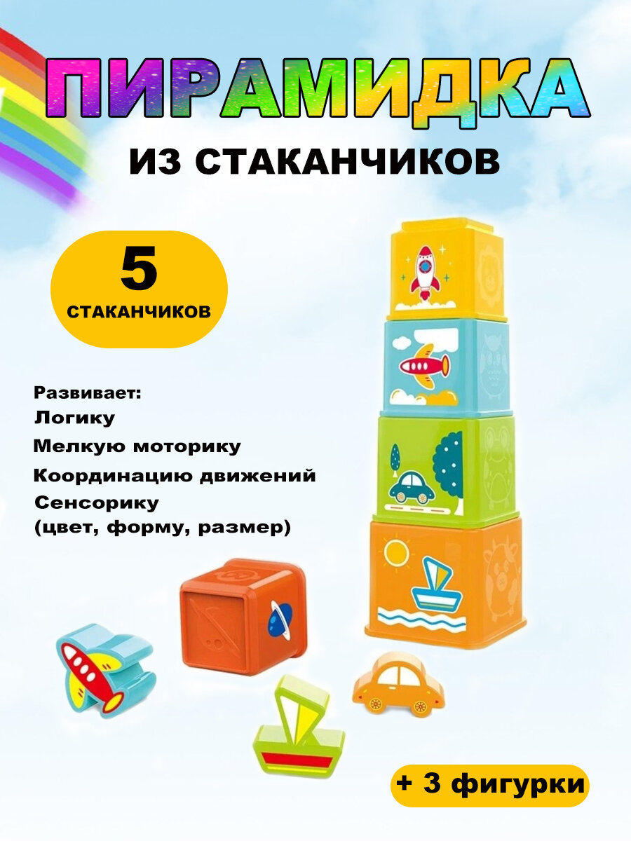 Развивающий набор Huanger Пирамидка: 5 стаканчиков, 3 игрушки/ Башня из стаканчиков, для детей от 12 месяцев