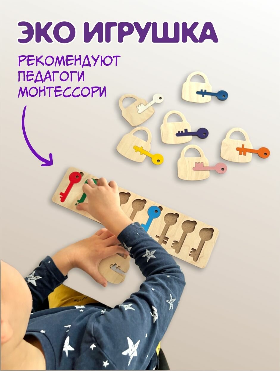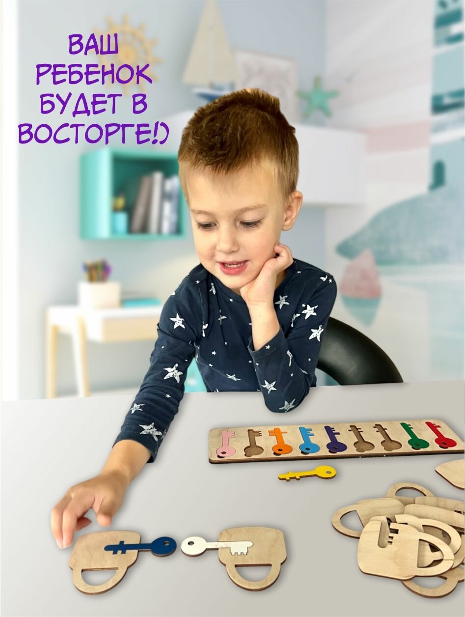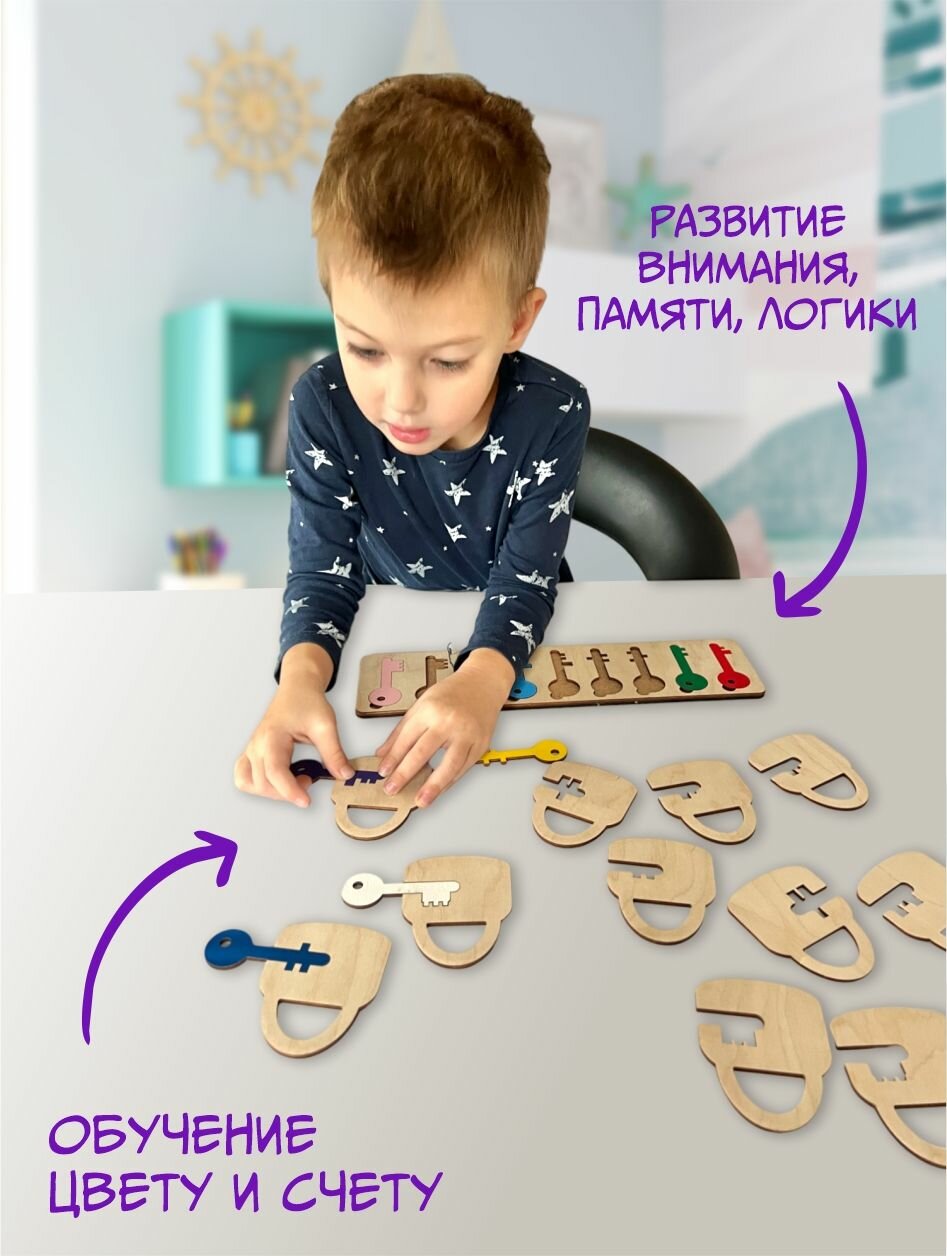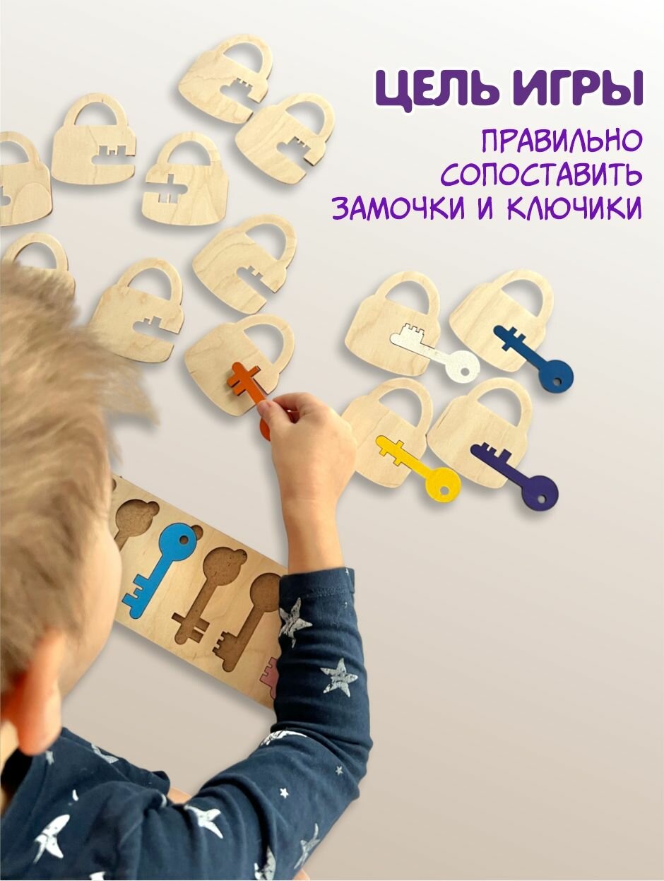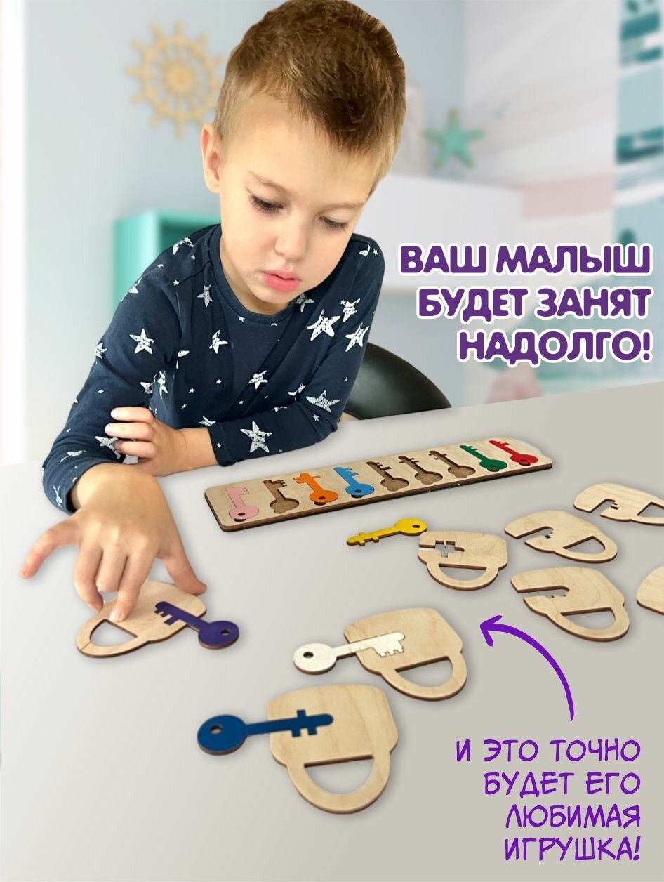 Развивающая игра Сортер Мозаика деревянная для мальчиков и девочек "Ключики", монтессори, Kids Wooow интересное: