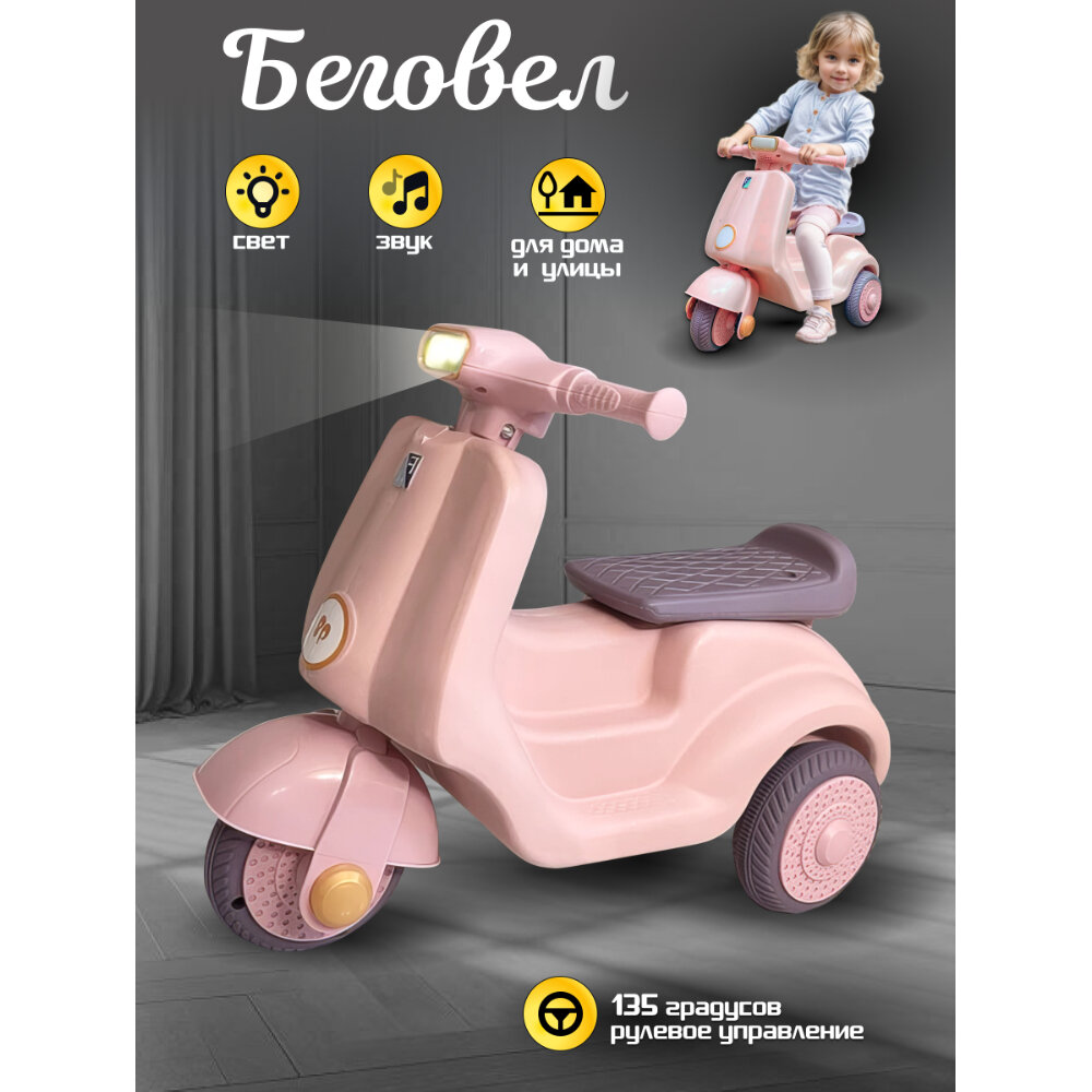 Купить Детский трехколесный беговел мотоцикл 56 х 43 х 26 см для девочки от 3 лет со светом и музыкой