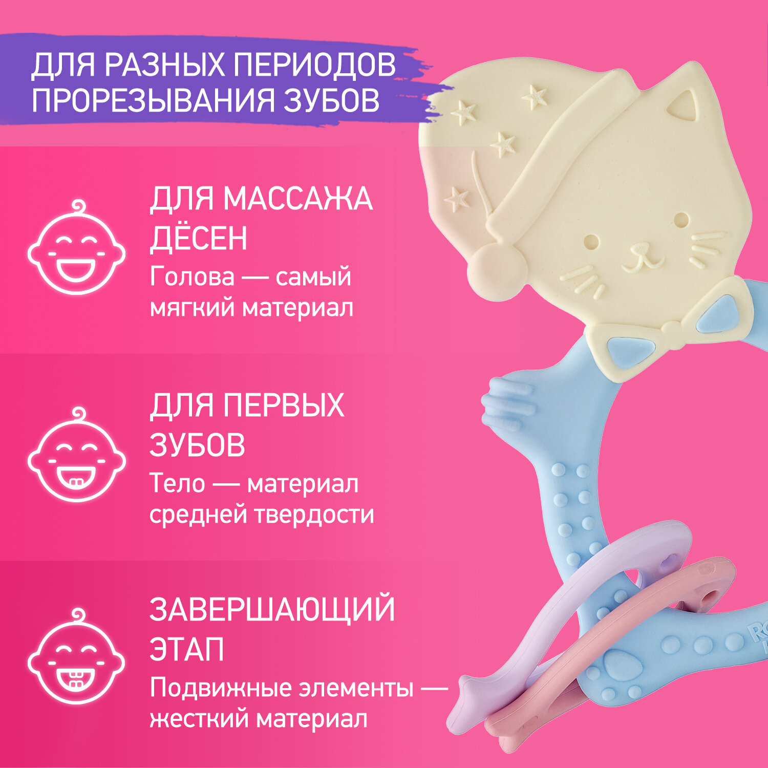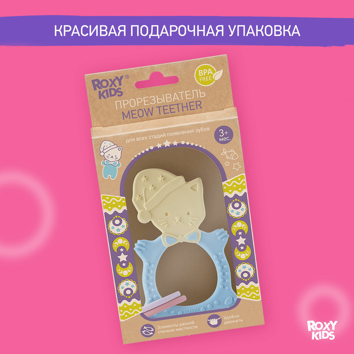 Roxy-kids Прорезыватель силиконовый MEOW TEETHER, универальный, цвет микс