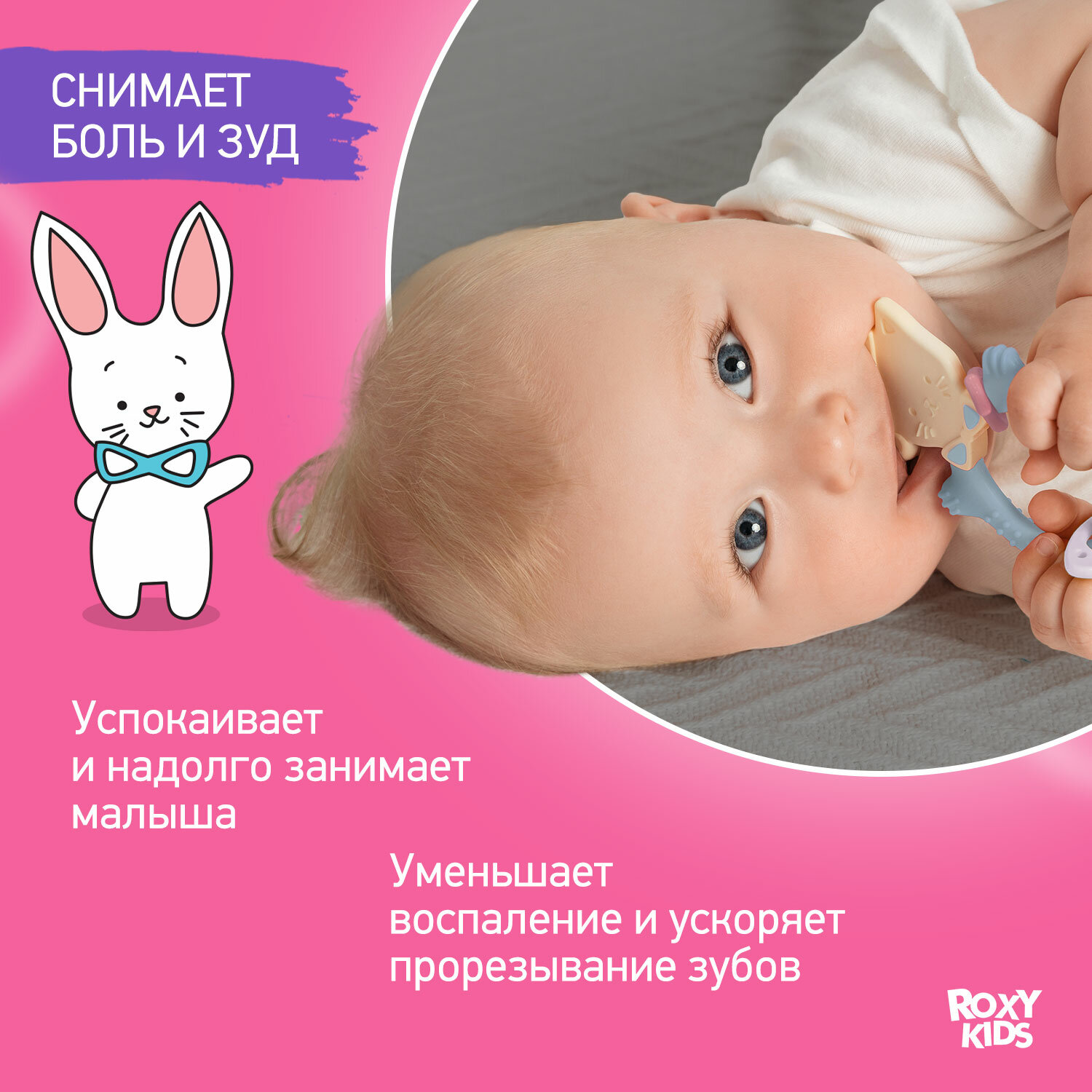 Универсальный прорезыватель Roxy-Kids Bunny, с держателем, голубой