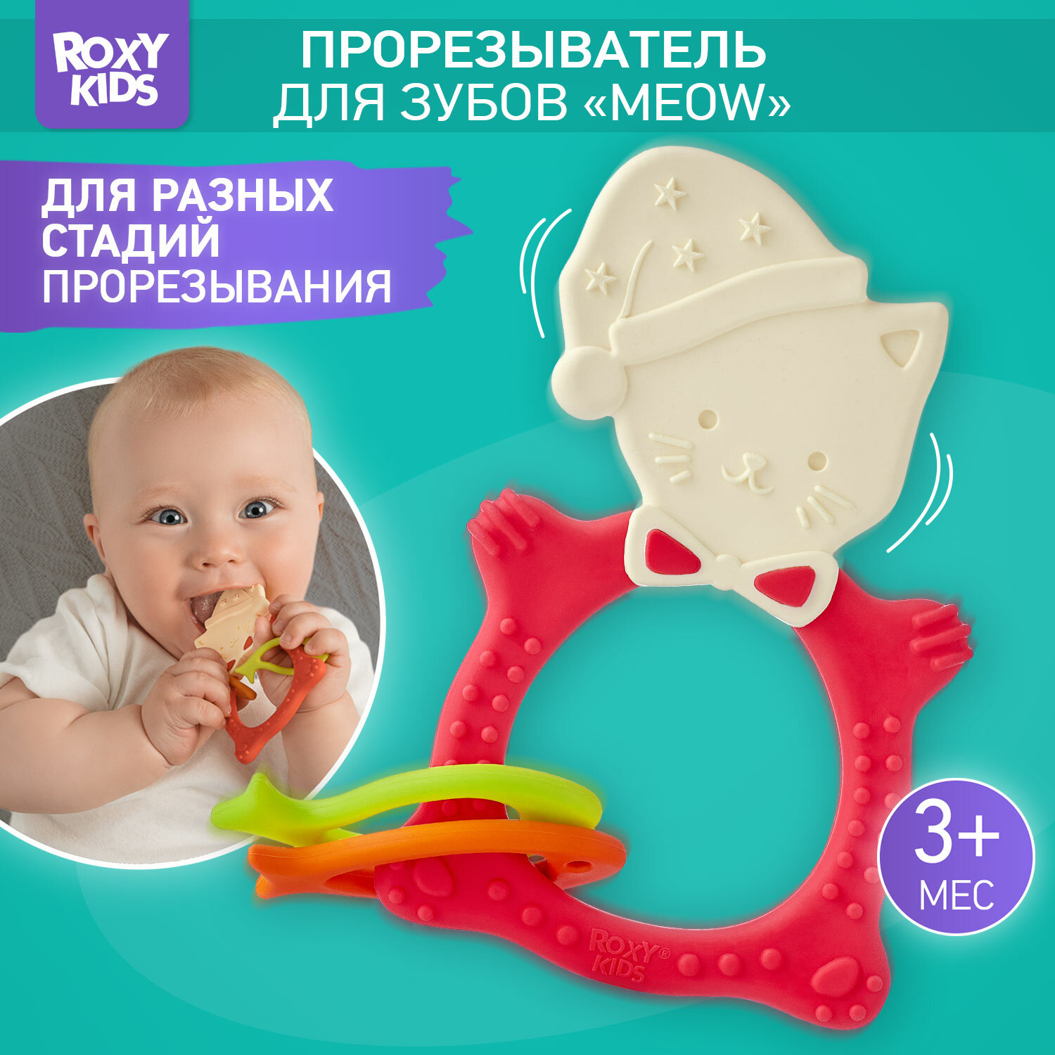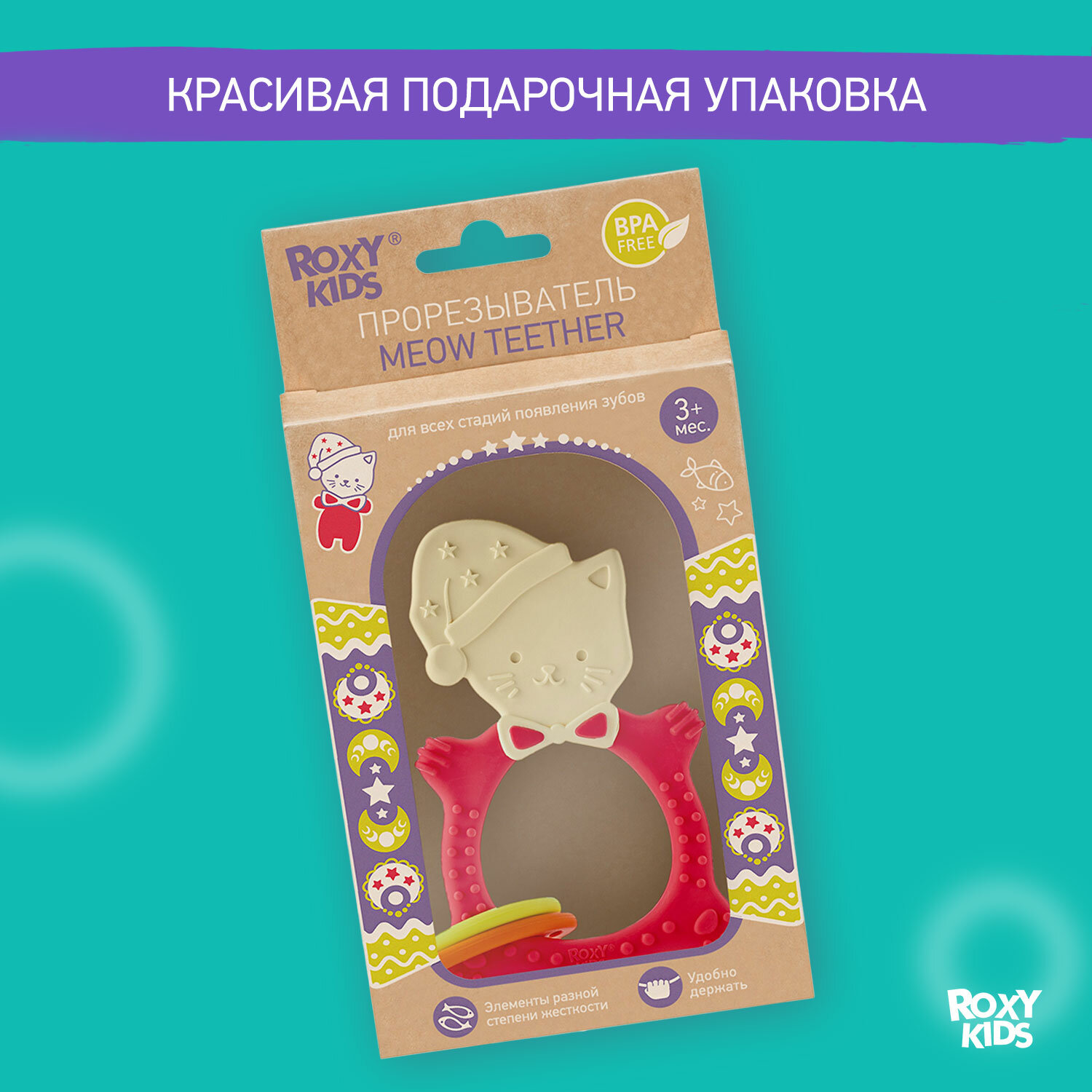 Roxy-kids Прорезыватель силиконовый MEOW TEETHER, универальный, цвет микс