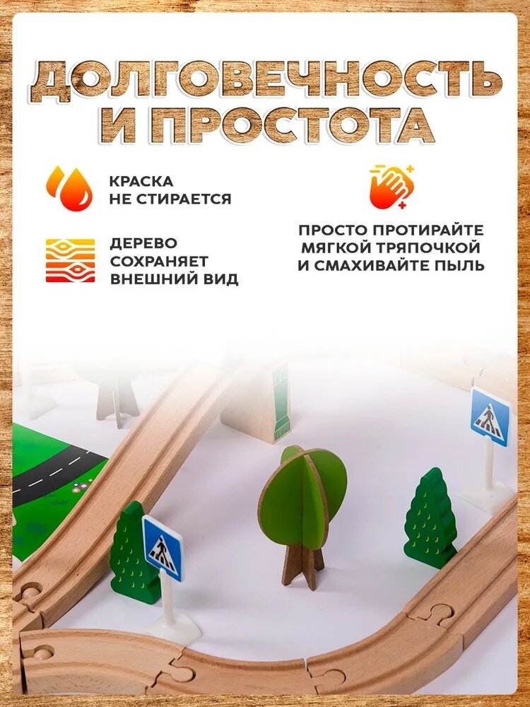 Деревянная железная дорога 100 деталей совместима с Икеа и Брио