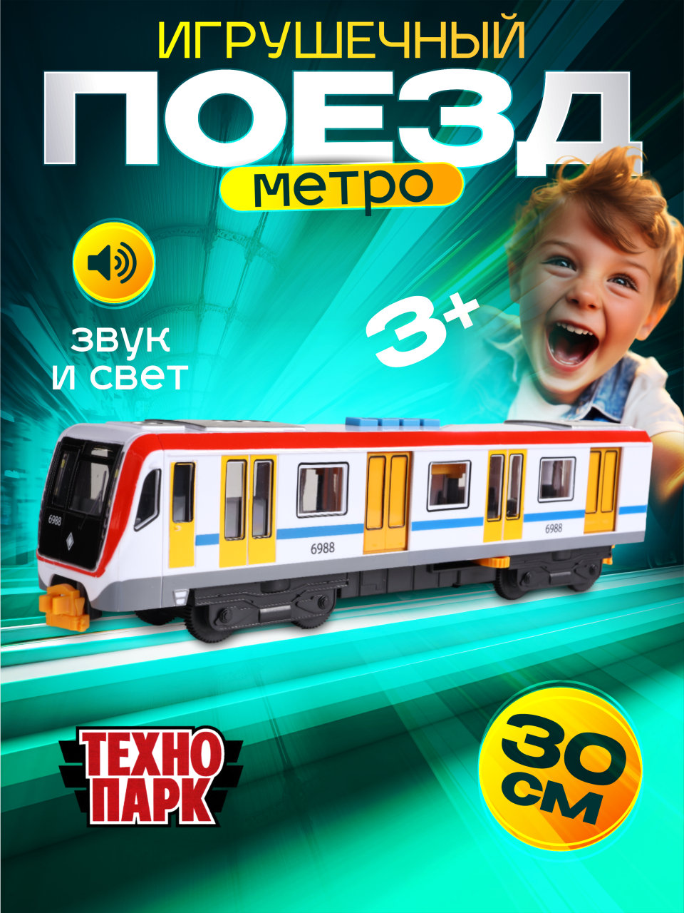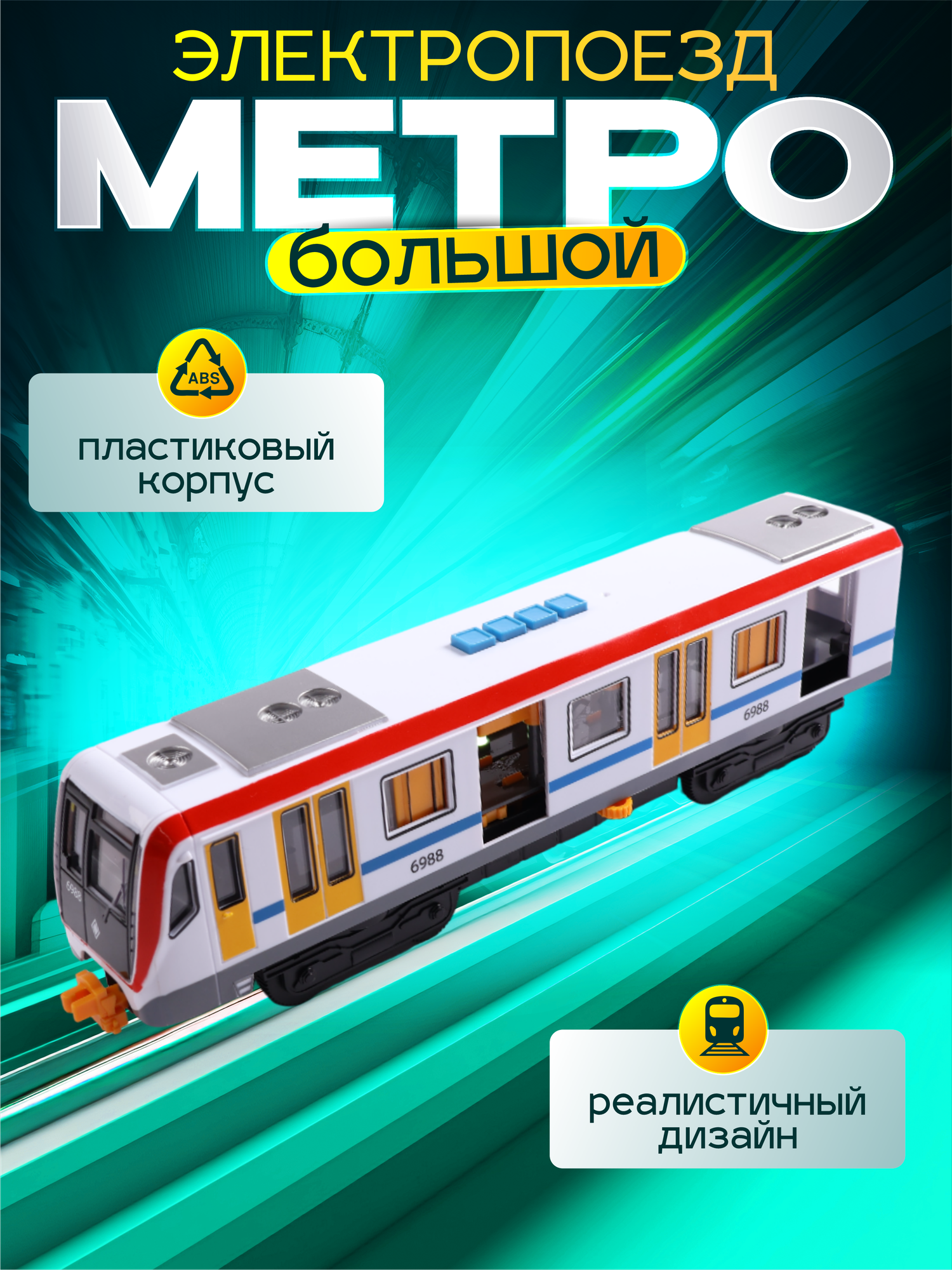 Модель пластиковая инерционная электровагон 30 см со звуком и светом Цвет Белый технопарк SUBWAYMSC-30PL-RDWH