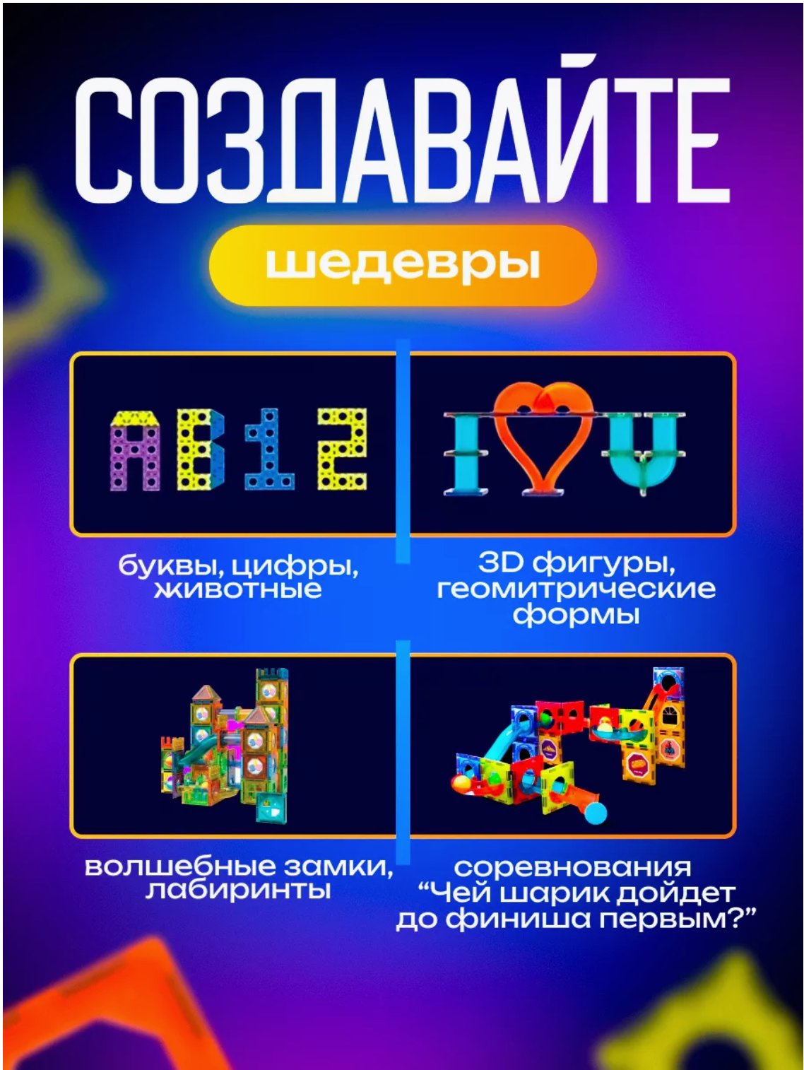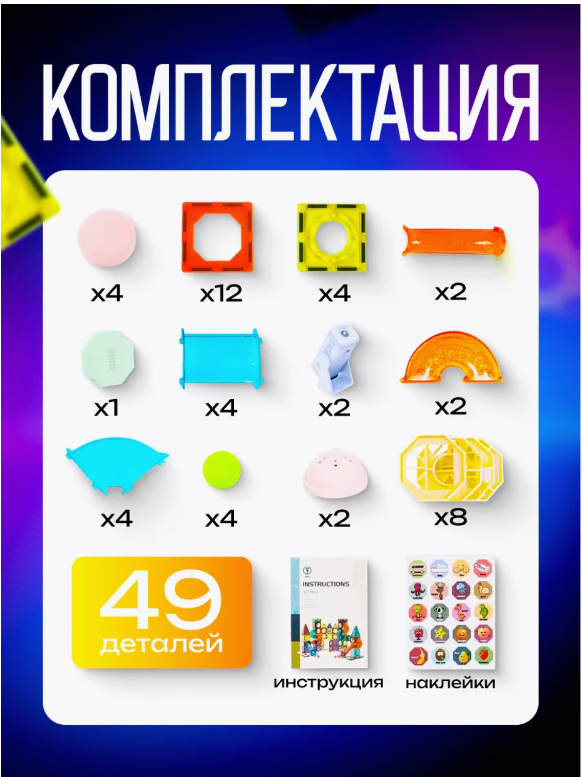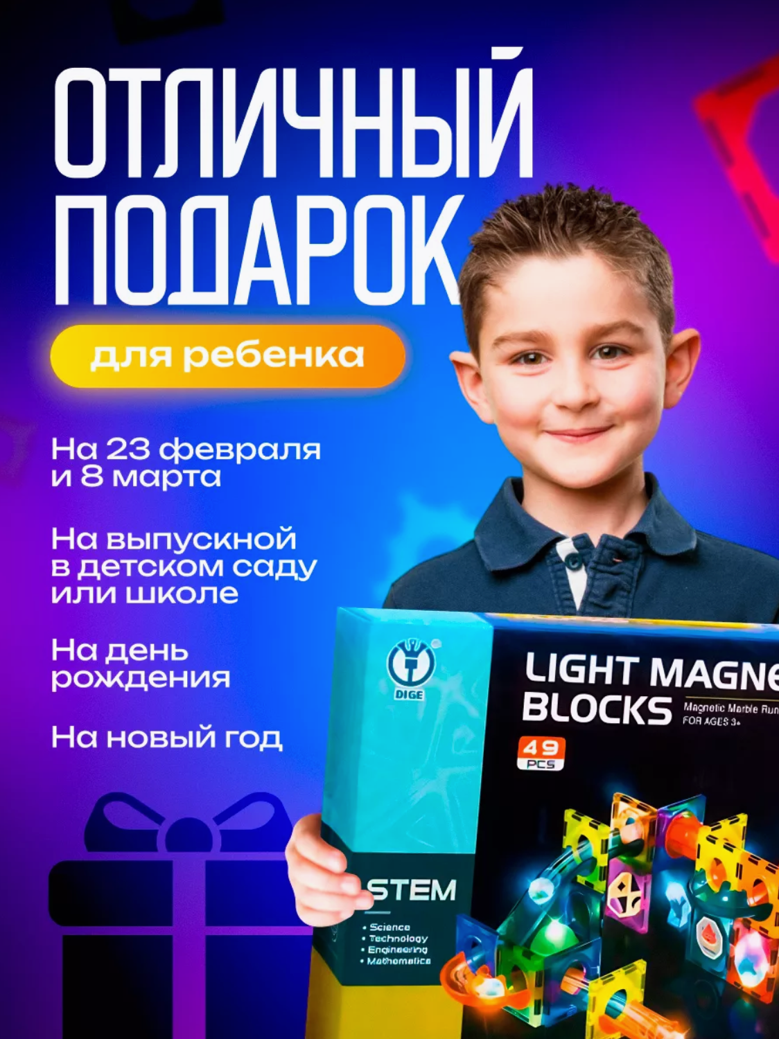 СохранитьКонструктор магнитный светящийся 49 деталей интересное: