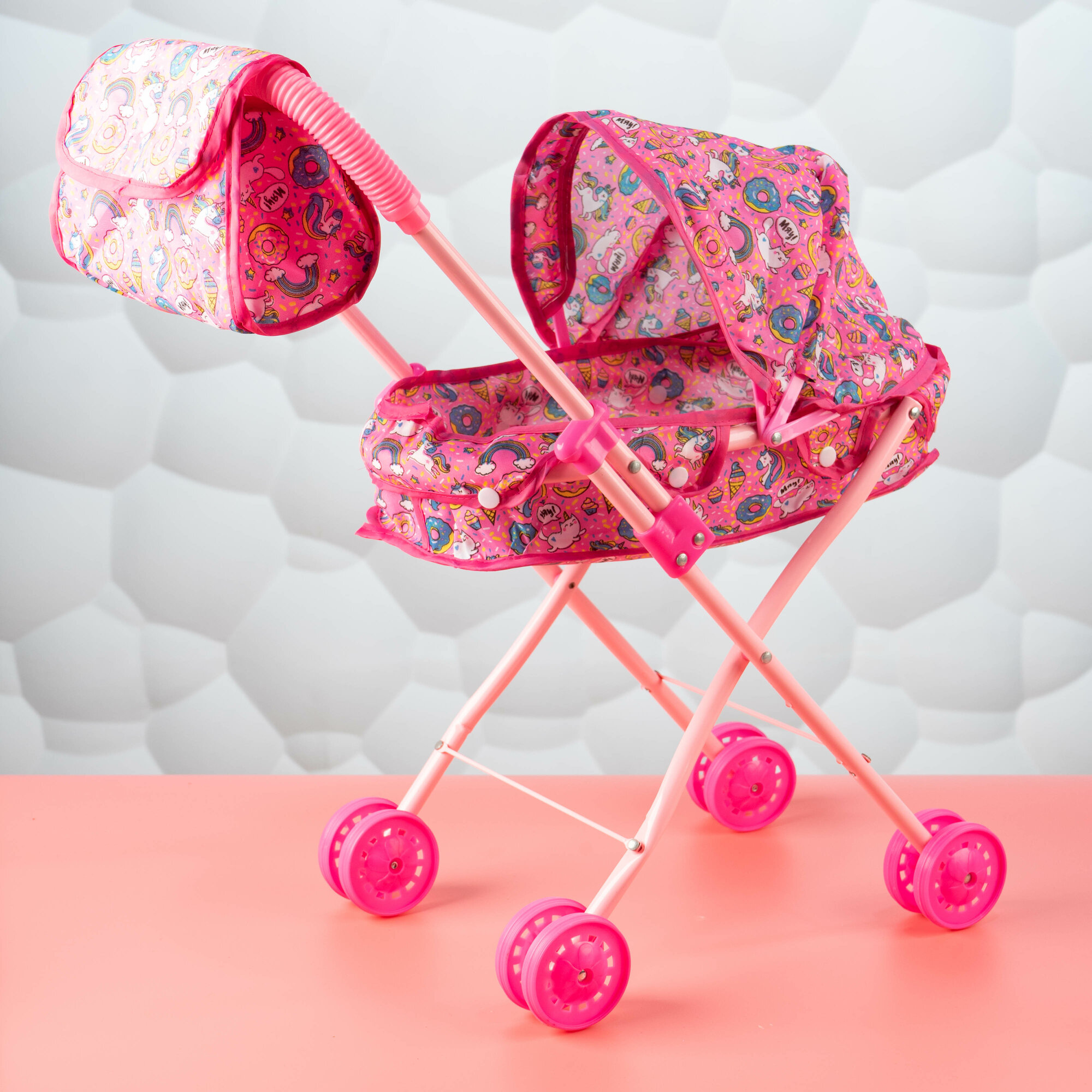 Коляска для кукол с сумкой "Сладкая поняшка" универсальная, металлический каркас