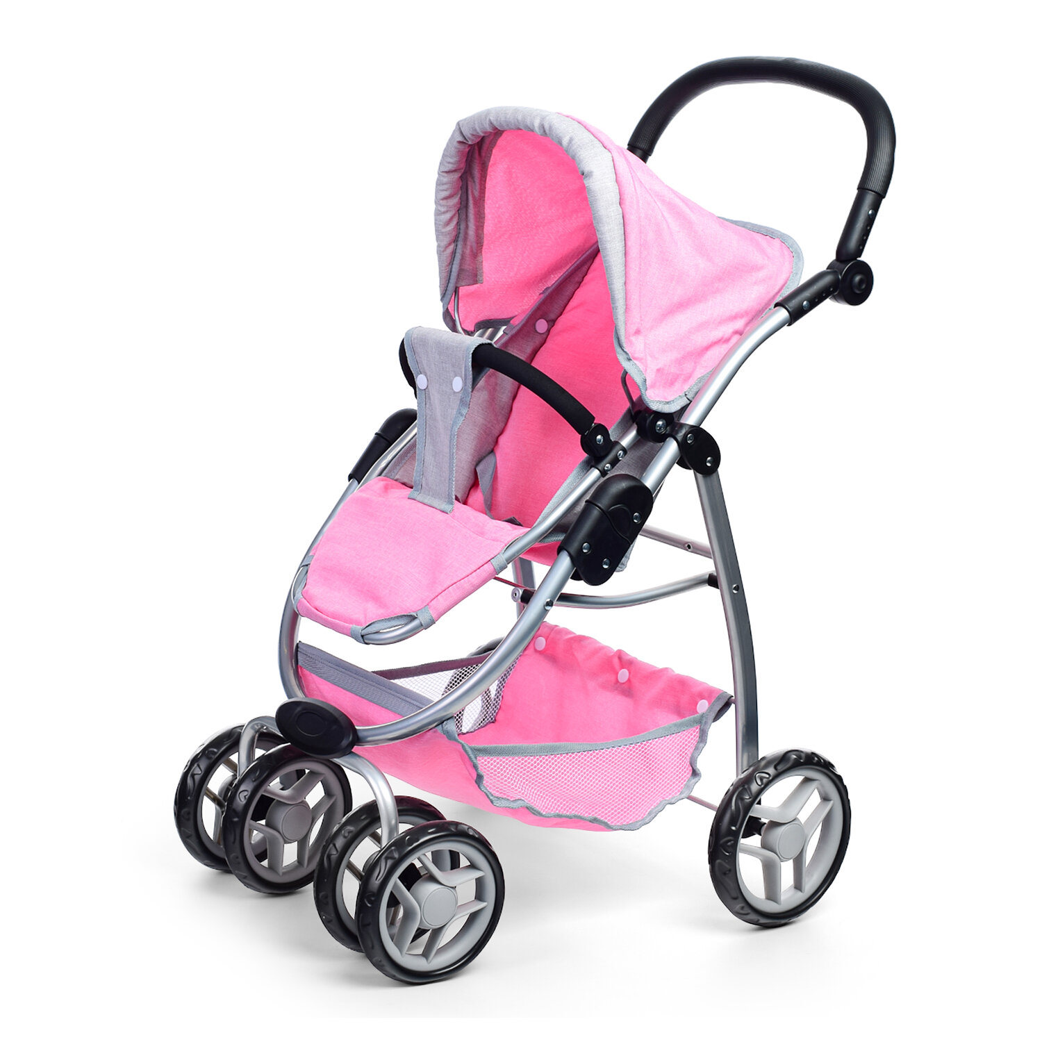 Коляска-трансформер для кукол 9662 металлическая, регулируемая ручка, с корзиной, в пакете