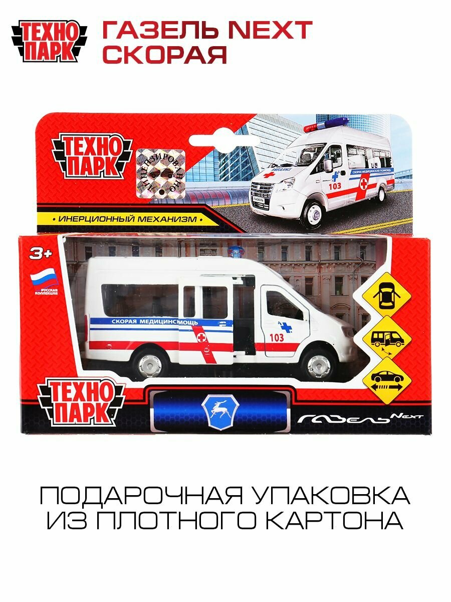 Купить Машинка игрушка детская для мальчика металлическая Технопарк Газель Некст Скорая с подвижными деталями 14 см