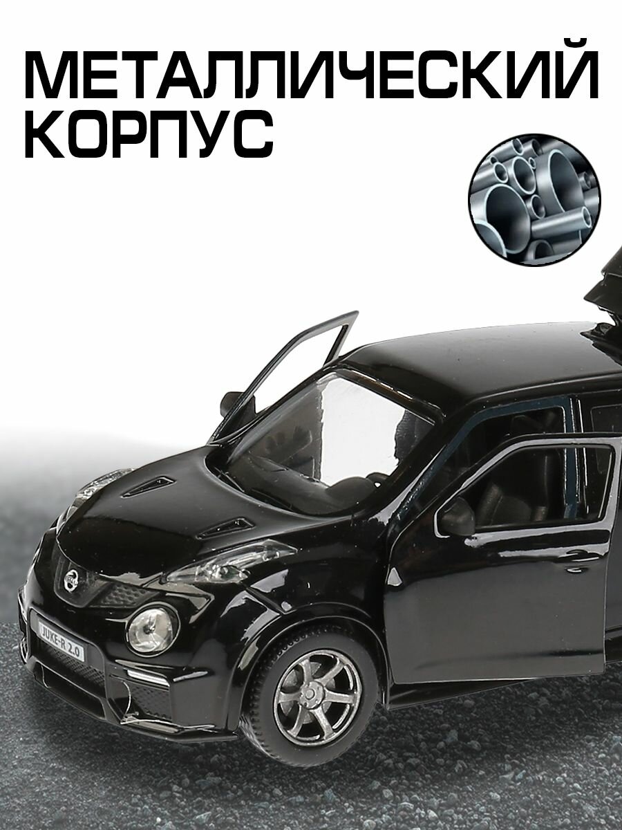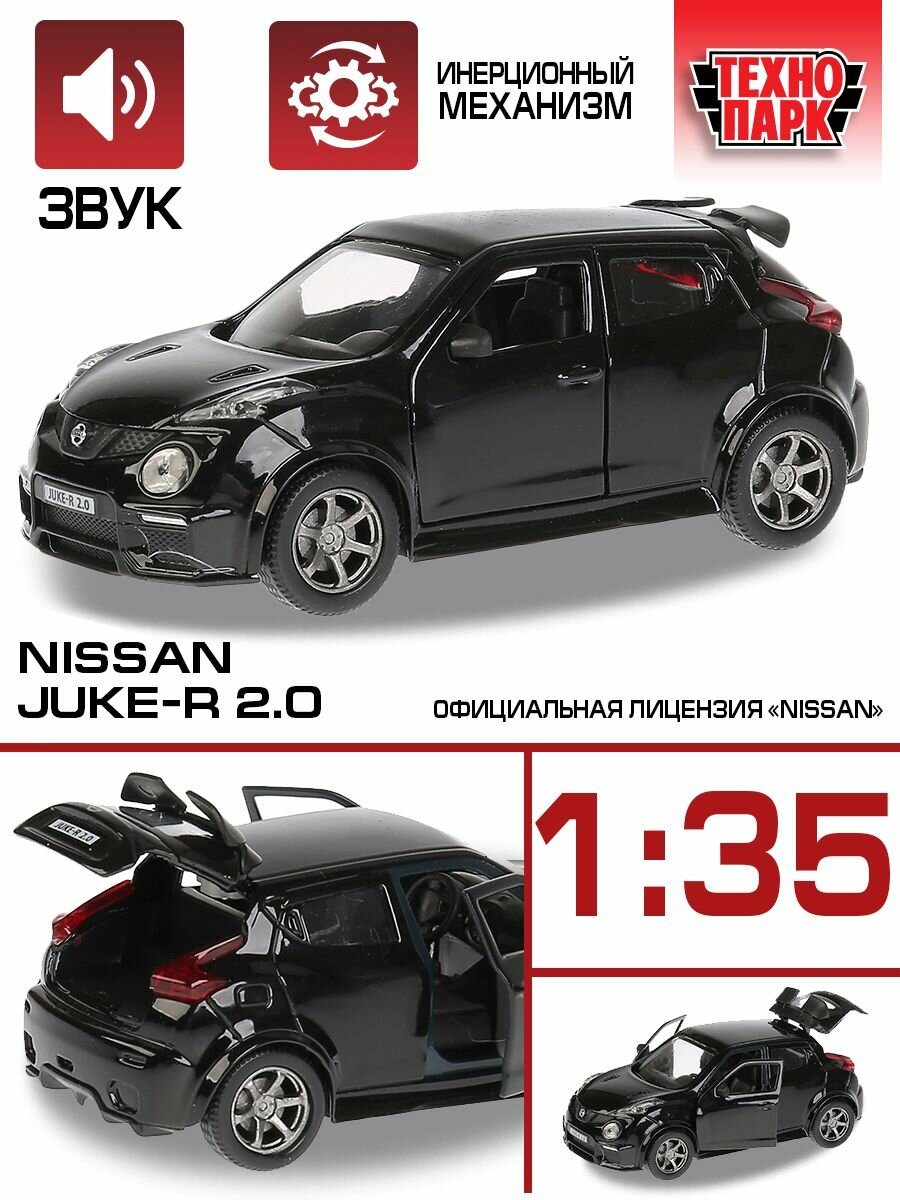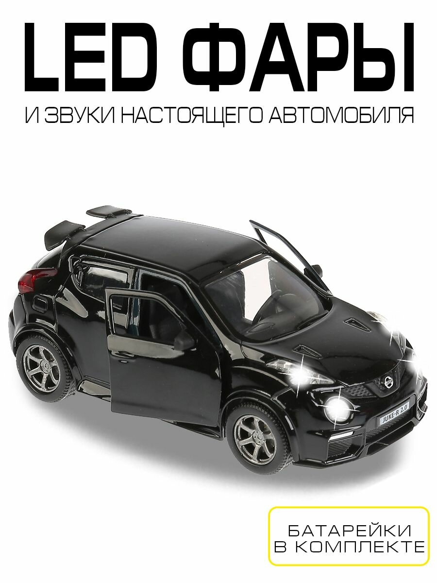 Машинка детская Nissan Juke-R 2.0 12 см, Технопарк, черная, открываются двери и багажник, свет и звук