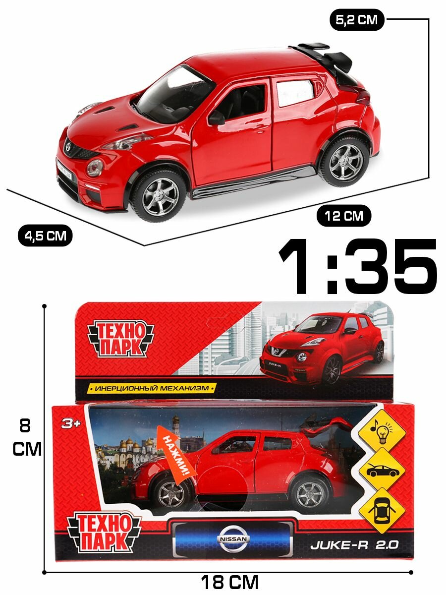 Машинка детская Nissan Juke-R 2.0 12 см, Технопарк, красная, открываются двери и багажник, металл, свет и звук