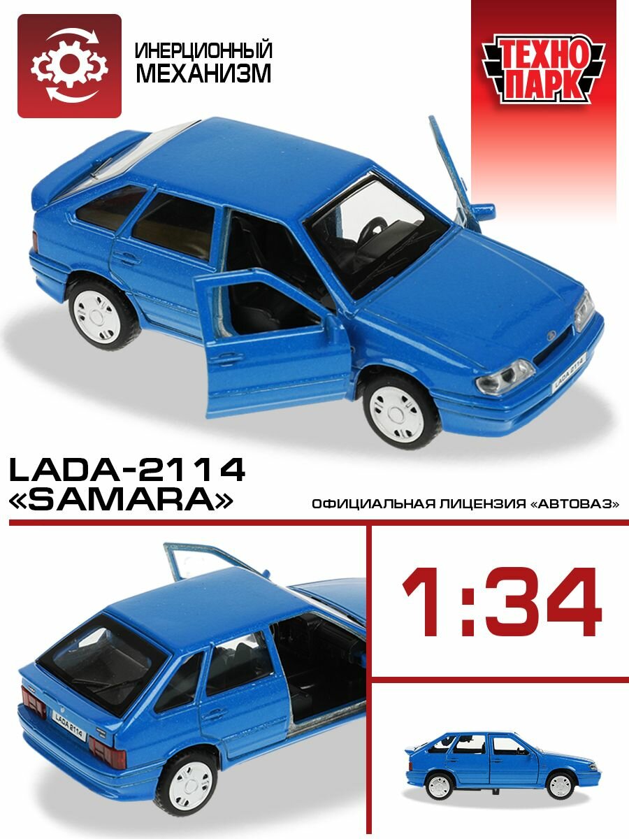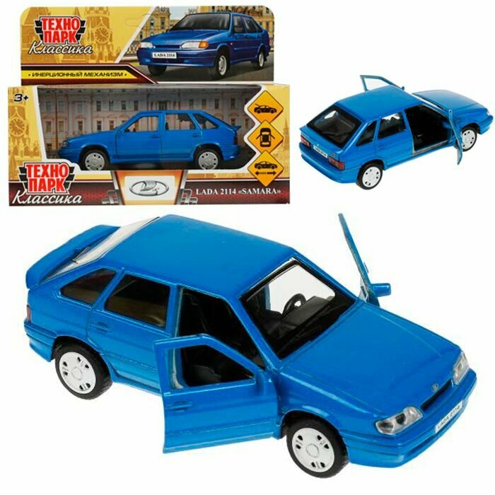 Модель 2114-12-BU LADA -2114 SAMARA, 12 см, двери, багаж, инерц., синий Технопарк в кор