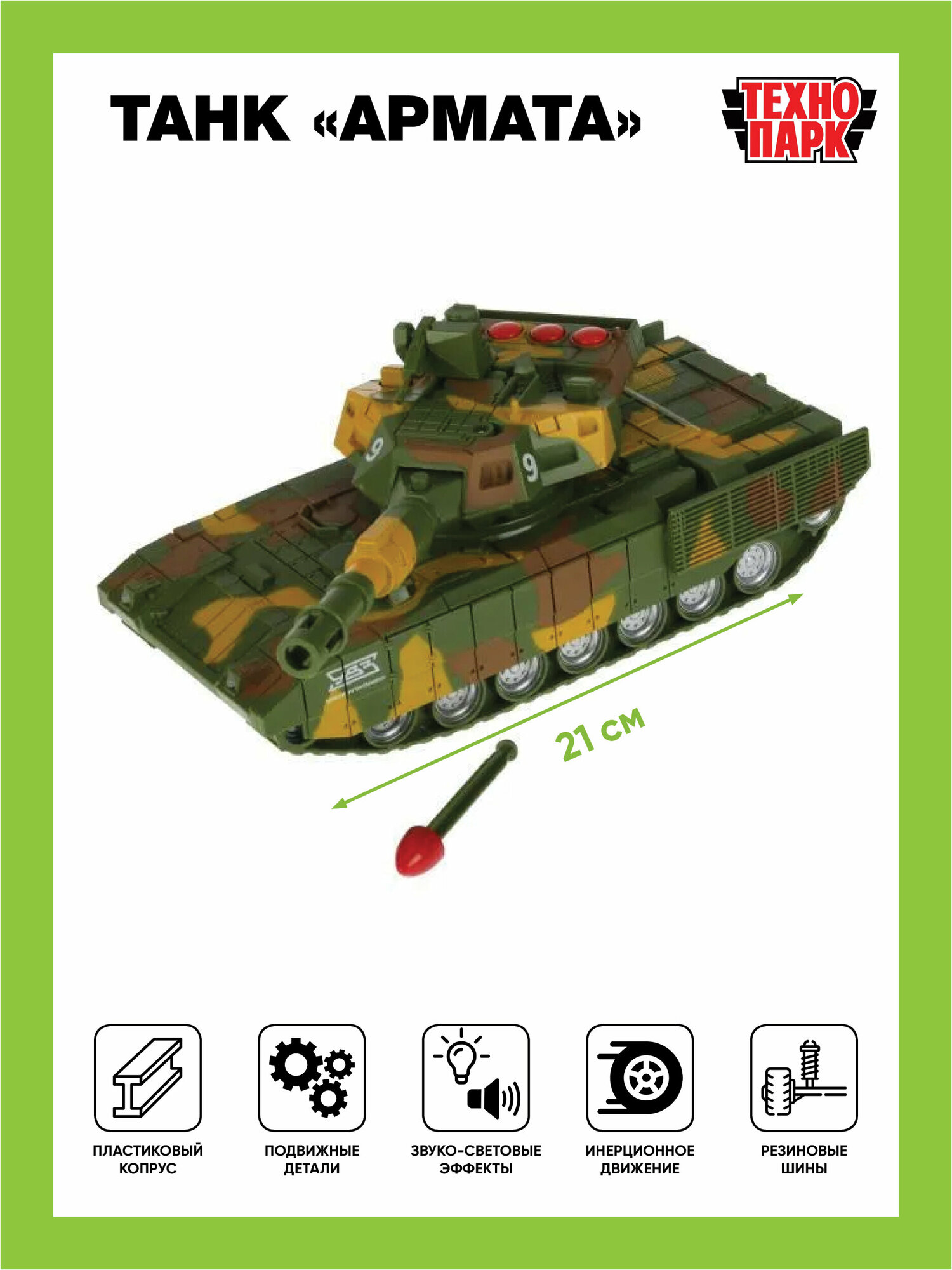 Купить Танк Т-14 Армата камуфляж 21см Технопарк пластик. инерц. подвижная пушка, свет+звук