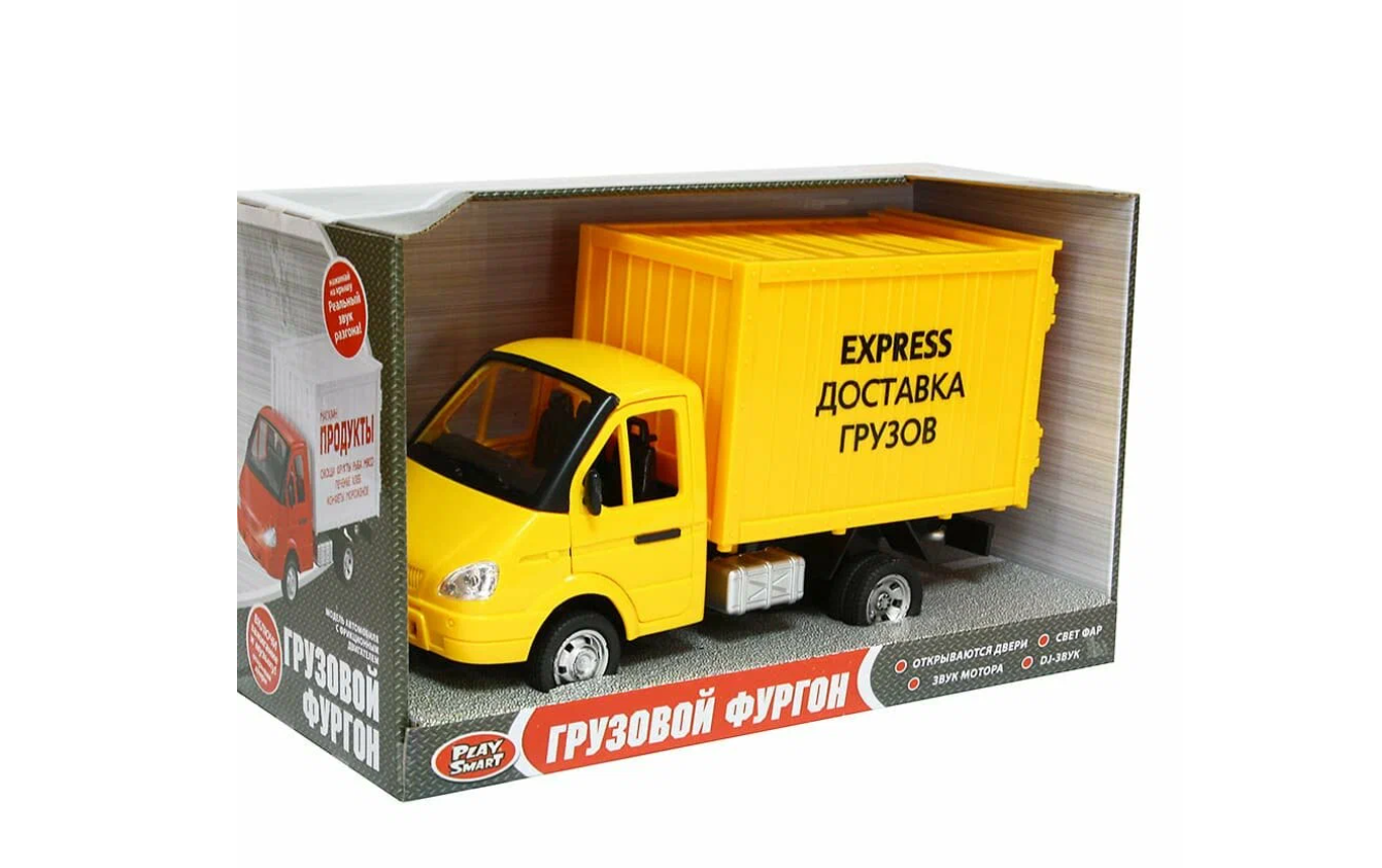 Машинка грузовой фургон "Доставка грузов" свет, звук откр. все двери