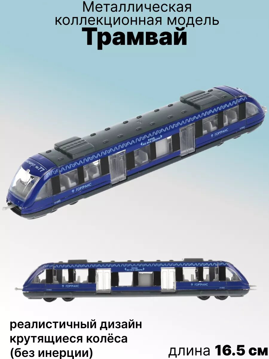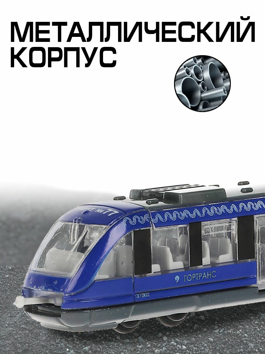 Машинка детская Трамвай Метрополитен 16.5 см, Технопарк, синяя, металлическая