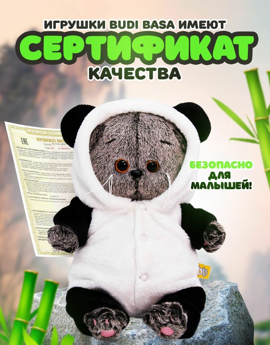 Budi Basa Мягкая Игрушка Кот Басик BABY в комбинезоне Панда (20см) BB-032, (ООО ""МПП"")