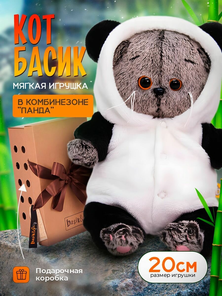Купить Басик и Ко Мягкая игрушка «Басик BABY», в комбинезоне панда, 20 см