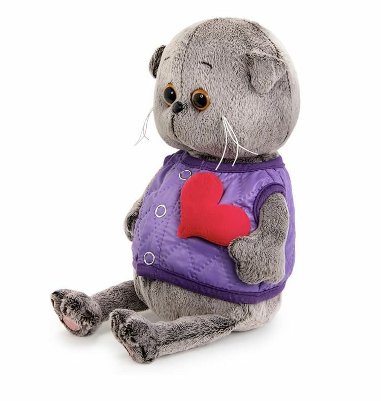 Кот Басик BABY 20 см в дутом жилете с сердечком