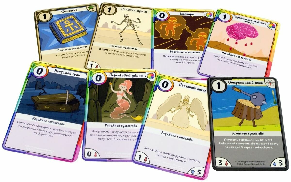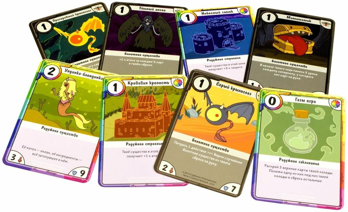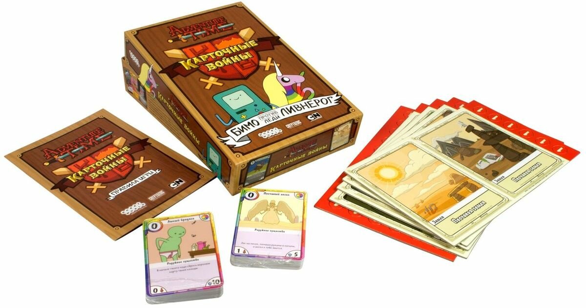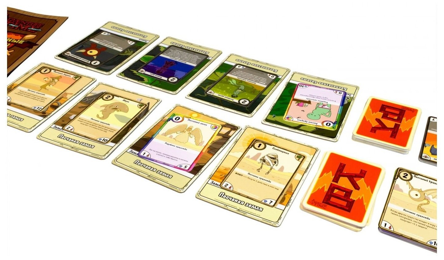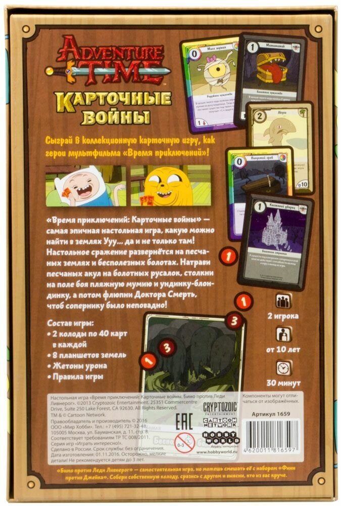 | Дополнительная информация | Игра по мотивам популярного мультипликационного сериала Adventure Time. Её можно смешать с набором «Финн против Джейка» и собрать свою уникальную колоду. |