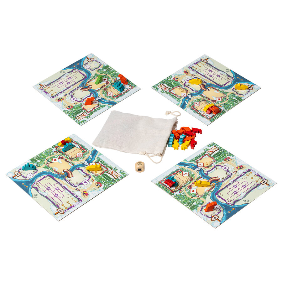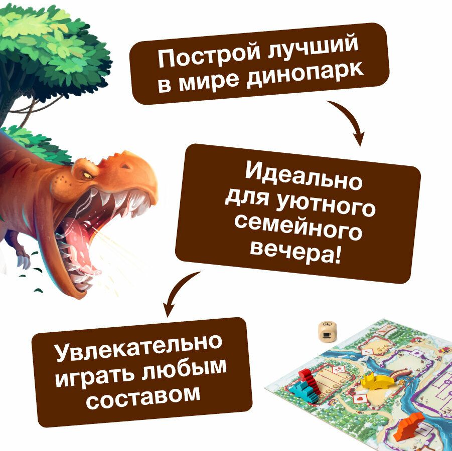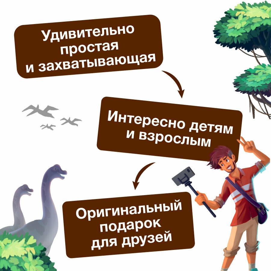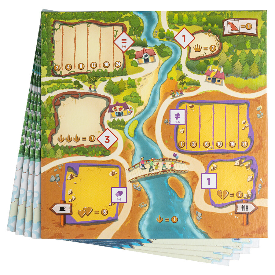 | Комплектация | 5 двухсторонних планшетов динопарка(одна сторона летняя, другая — зимняя), 60 фигурок динозавров (по 10 каждого вида), 1 кубик места, 1 мешочек, правила |
