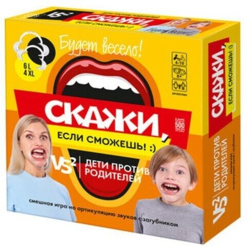 Настольная игра-бубнилка "Скажи если сможешь" на объяснение и угадывание слов, для всей семьи, в наборе 200 карт на 400 фраз и 10 загубников