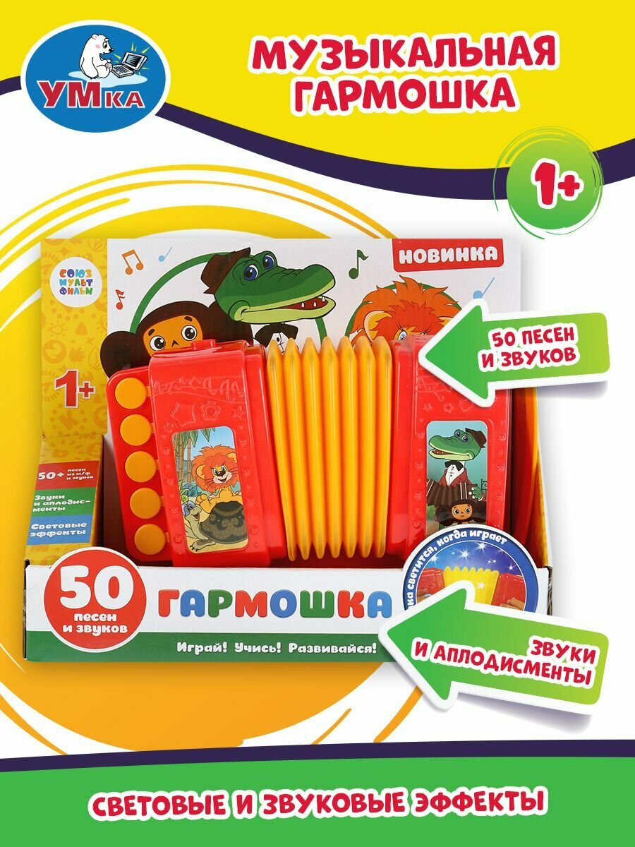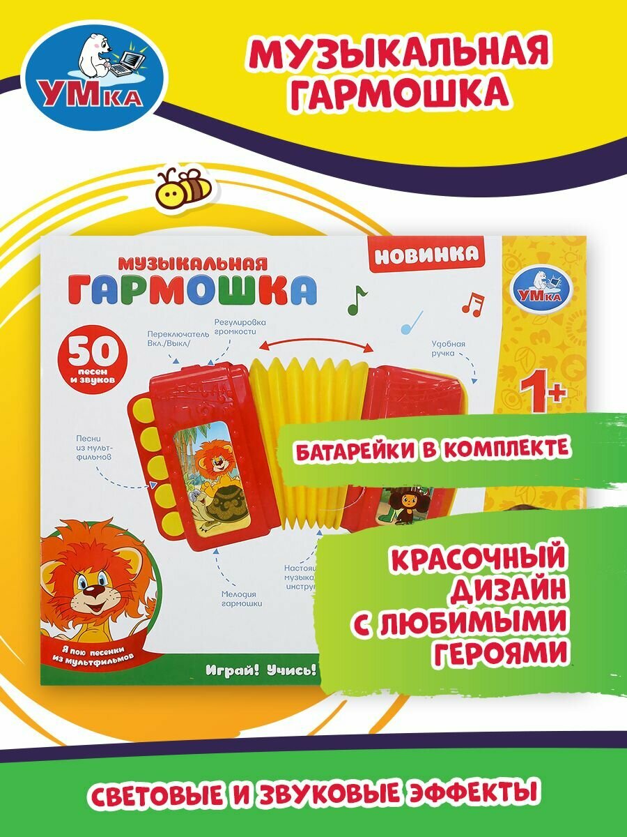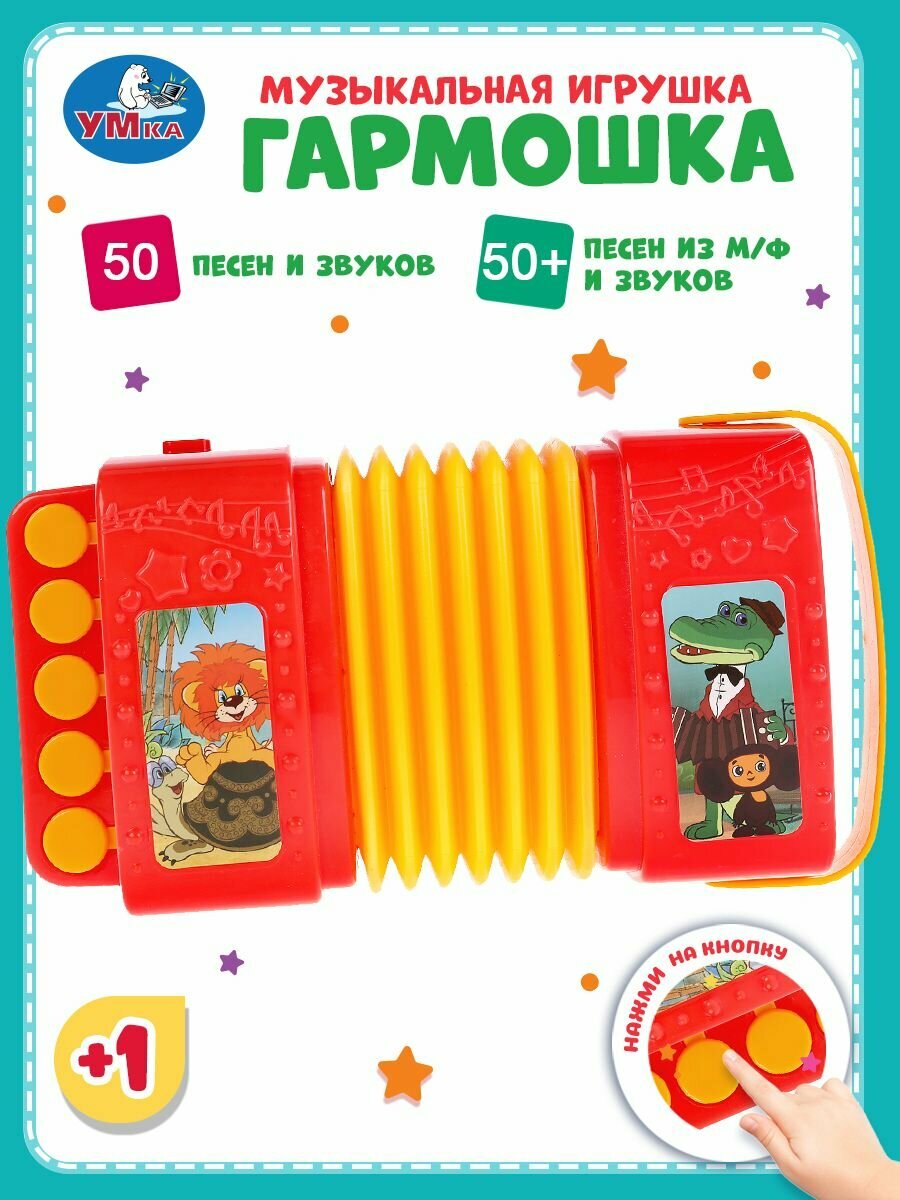 | Дополнительная информация | Музыкальная игрушка гармонь детская, гармошка Умка Союзмультфильм |