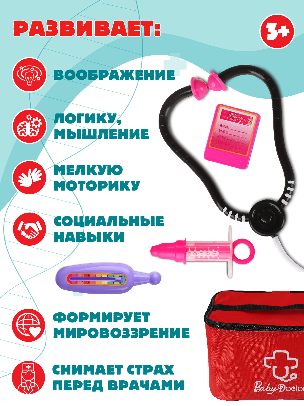 СохранитьИгровой набор Доктор в сумочке, JB0203805 интересное: