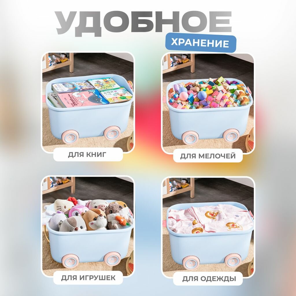 Контейнер для хранения игрушек пластиковый ящик на колесах с рулем 3в1 интересное: