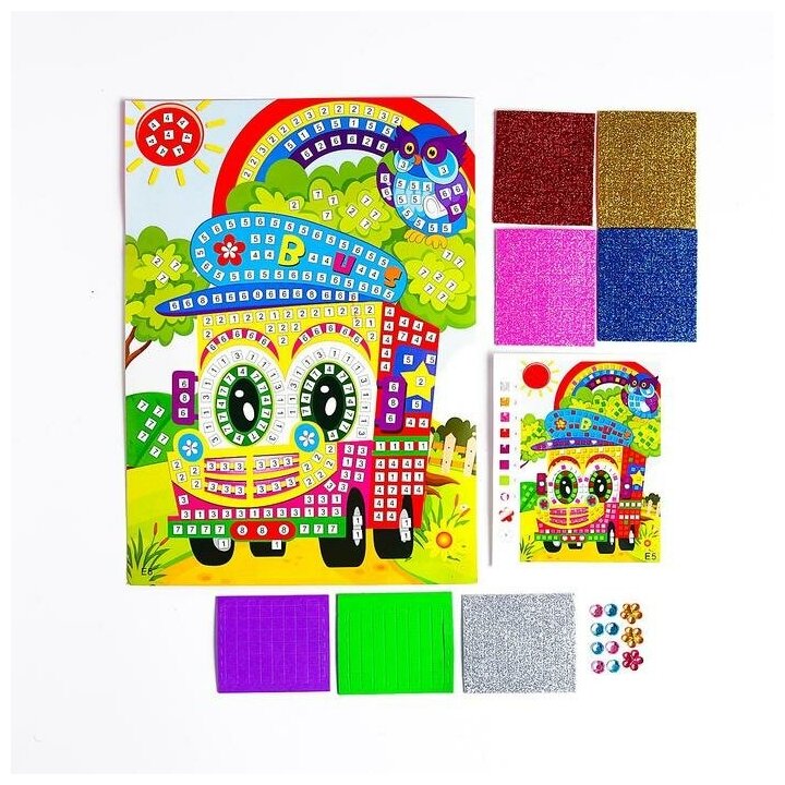 Купить Мозаика стикерная "Веселый автобус" блестки, стразы
