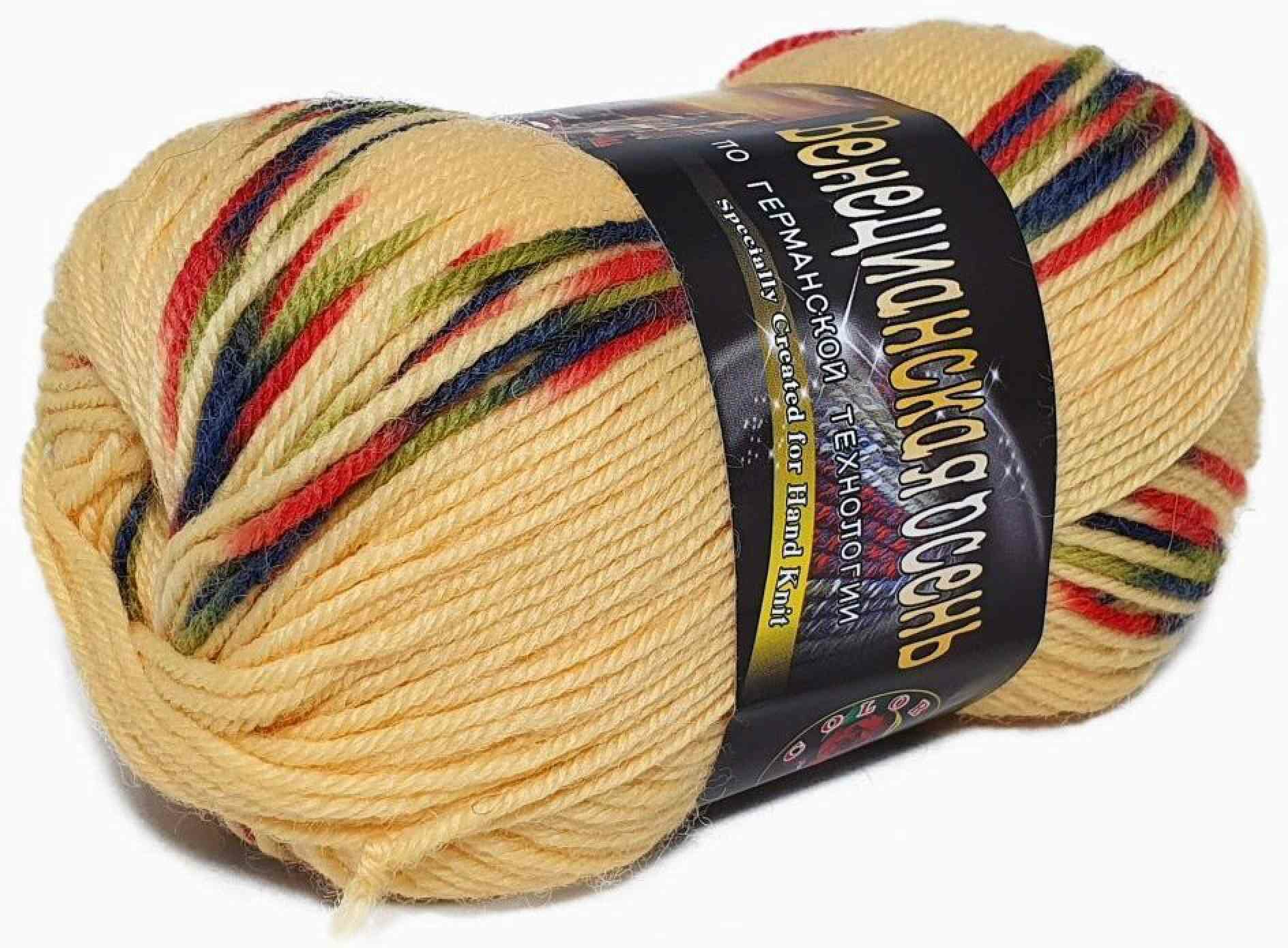 Пряжа Color City Венецианская осень принт желтый/штрих красный-зеленый (1), 85%мериносовая шерсть/15%акрил, 230м, 100г, 2шт