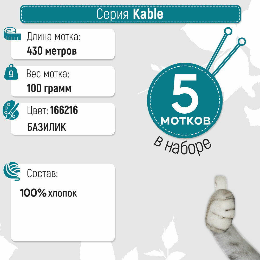 СохранитьПряжа для вязания Семеновская пряжа (Kable) Кабле, хлопок 100%, зеленая 5 шт. цвет 166216 интересное: