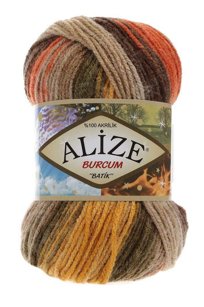 Пряжа Alize Burcum Batik бежево-коричнево-желтый (3379), 100%акрил, 210м, 100г, 1шт
