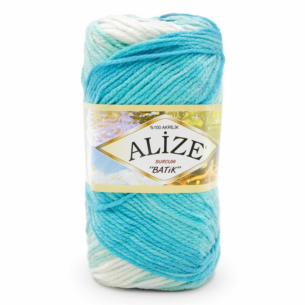 Пряжа Alize Burcum Batik бело-бирюзовый (1892), 100%акрил, 210м, 100г, 1шт