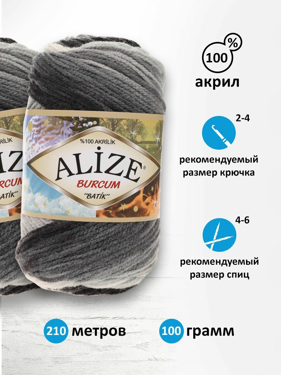 Пряжа Alize Burcum Batik бело-серо-черный (4428), 100%акрил, 210м, 100г, 2шт