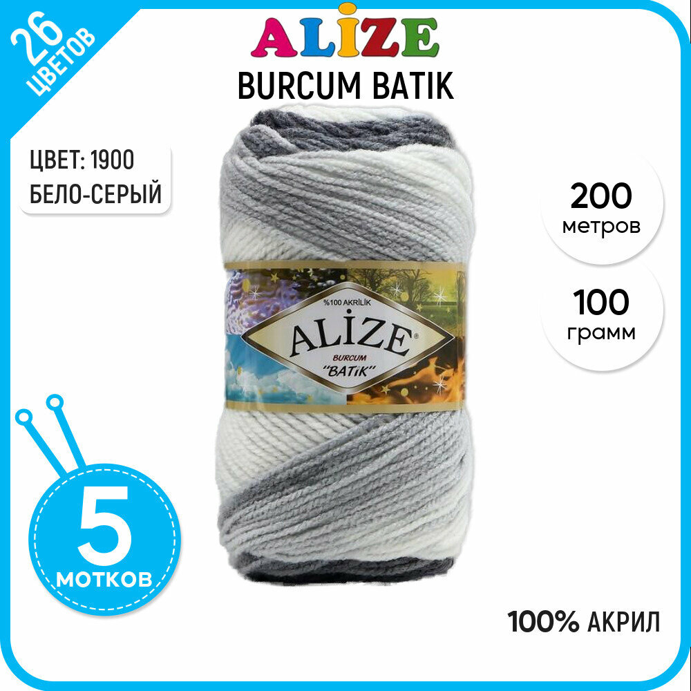 Купить Пряжа Alize Burcum Batik серый-белый-темно-серый (1900), 100%акрил, 210м, 100г, 5шт
