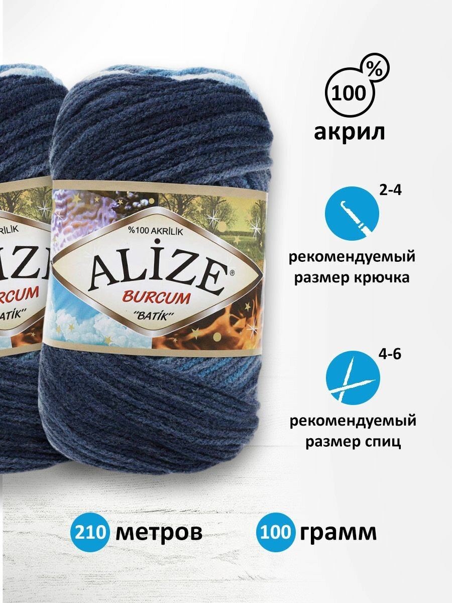 Пряжа Alize Burcum Batik бело-серо-синий (1899), 100%акрил, 210м, 100г, 2шт