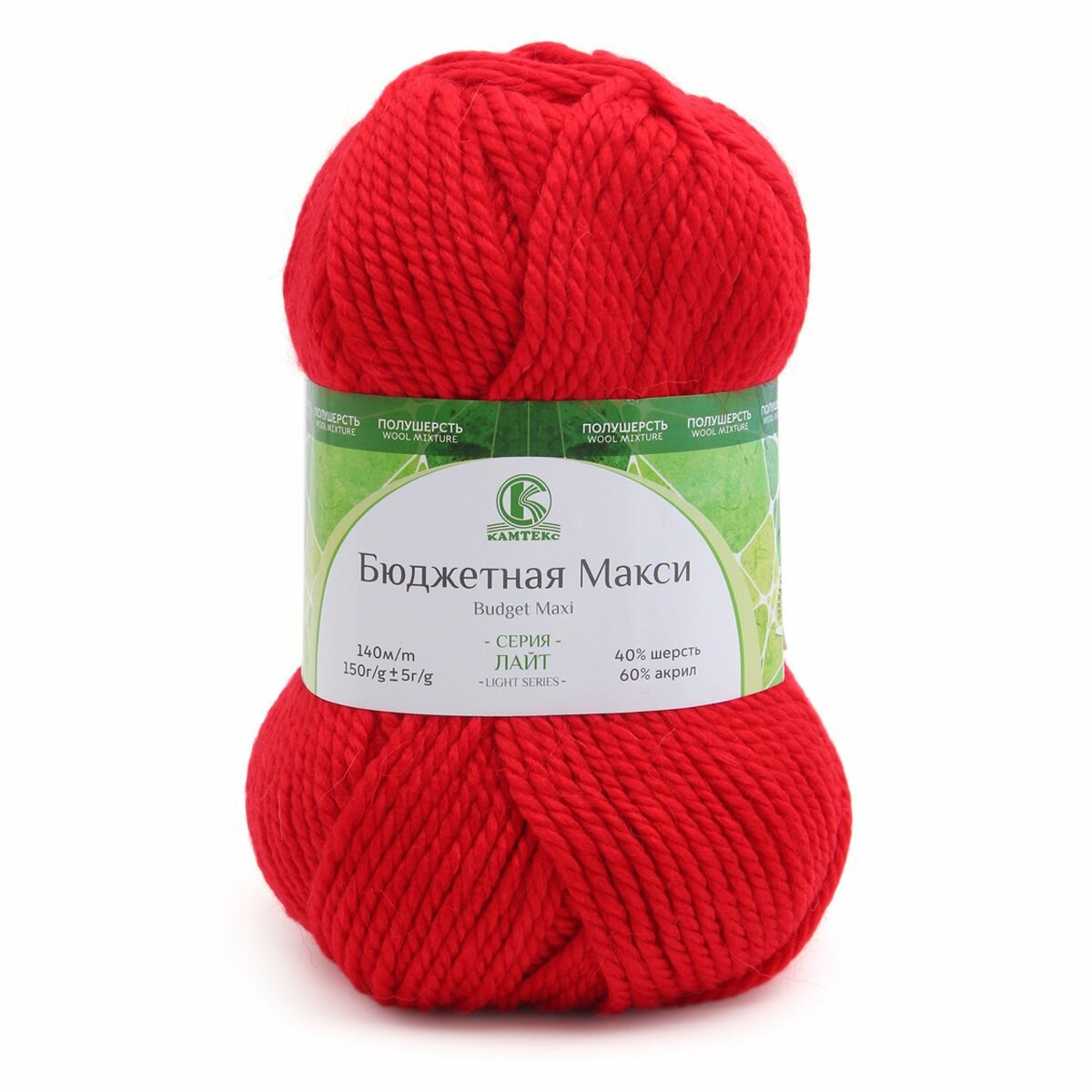 Пряжа для вязания Камтекс 'Бюджетная макси', 150г, 140м (шерсть 40%, акрил 60%) (046 красный), 4 мотка