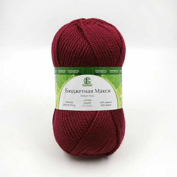 Пряжа для вязания Камтекс 'Бюджетная макси' 150г, 140м (шерсть 40%, акрил 60%) (091 вишня), 4 мотка