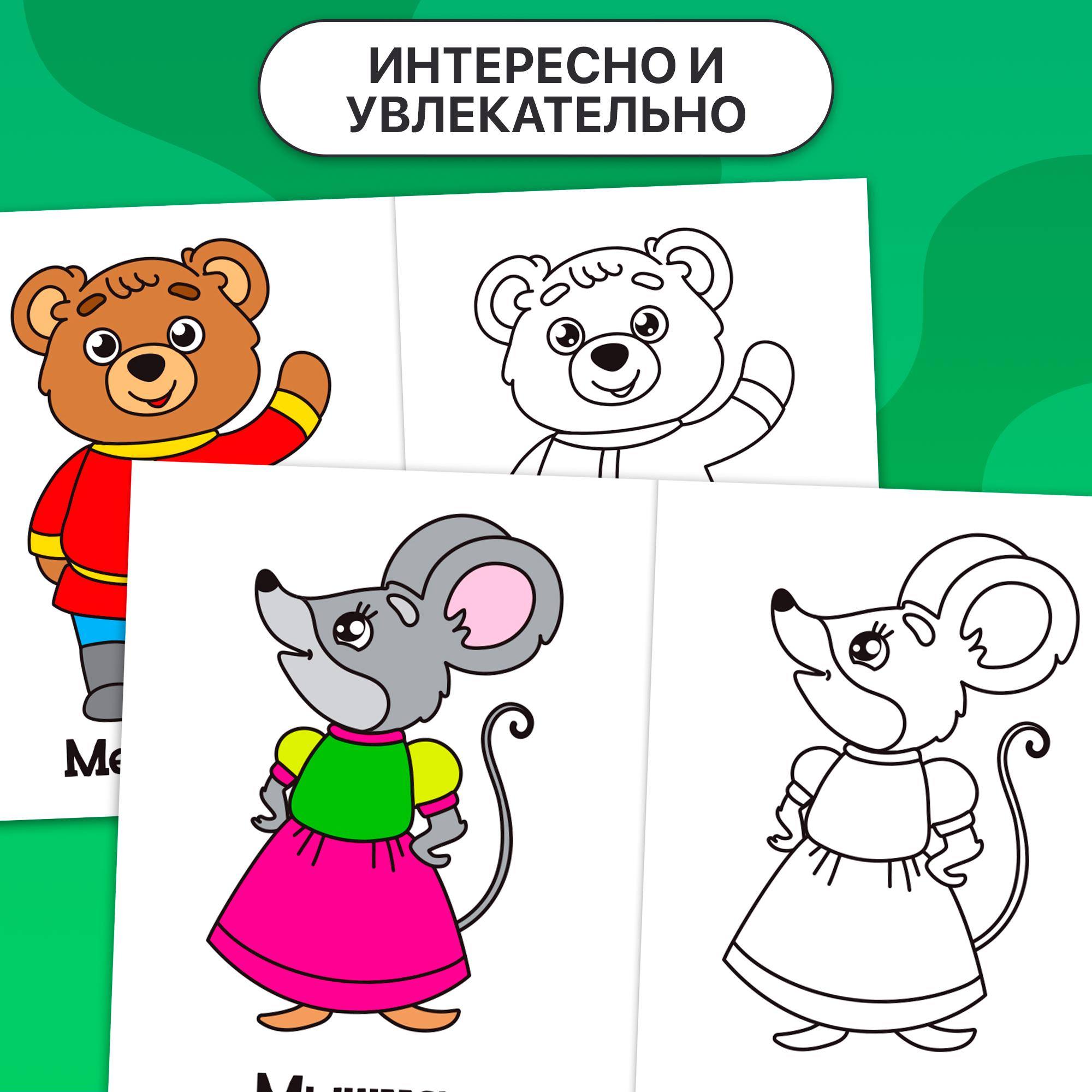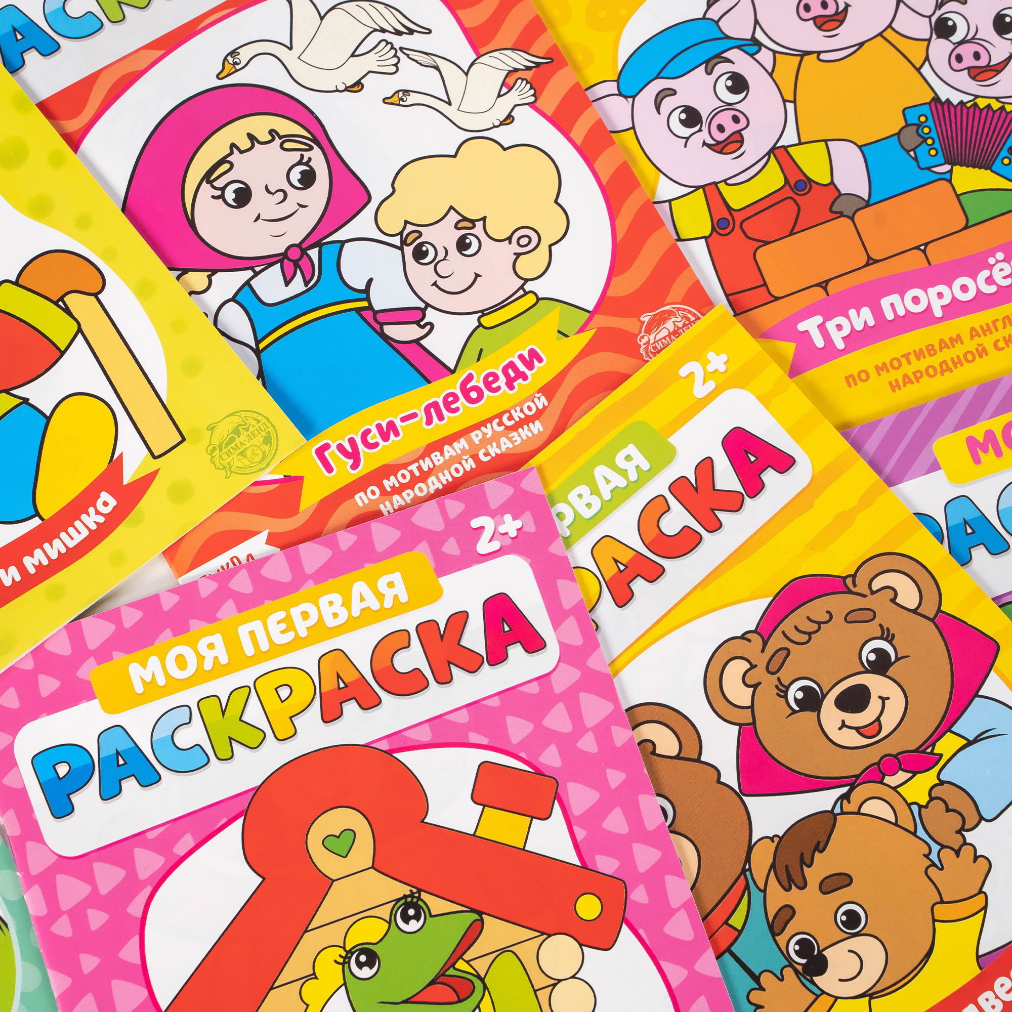 | Комплектация | Раскраска «Теремок», 16 стр. Раскраска «Три медведя». 16 стр. Раскраска «Маша и мишка», 16 стр. Раскраска «Гуси-лебеди», 16 стр. Раскраска «Колобок», 16 стр. Раскраска «Репка», 16 стр. Раскраска «Три поросёнка», 16 стр. Раскраска «Курочка Ряба», 16 стр. |