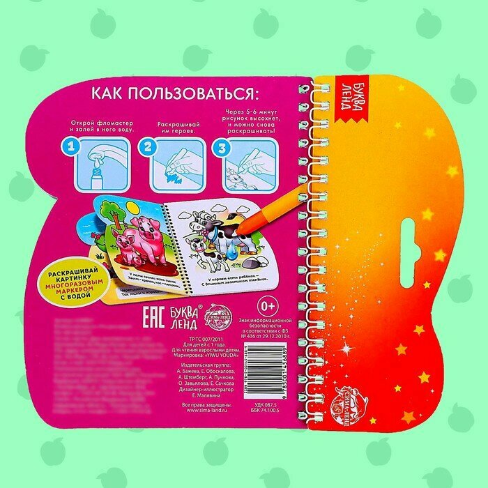 Книжка- раскраска "Рисуем водой. Кто чей малыш?", 10 стр. интересное: