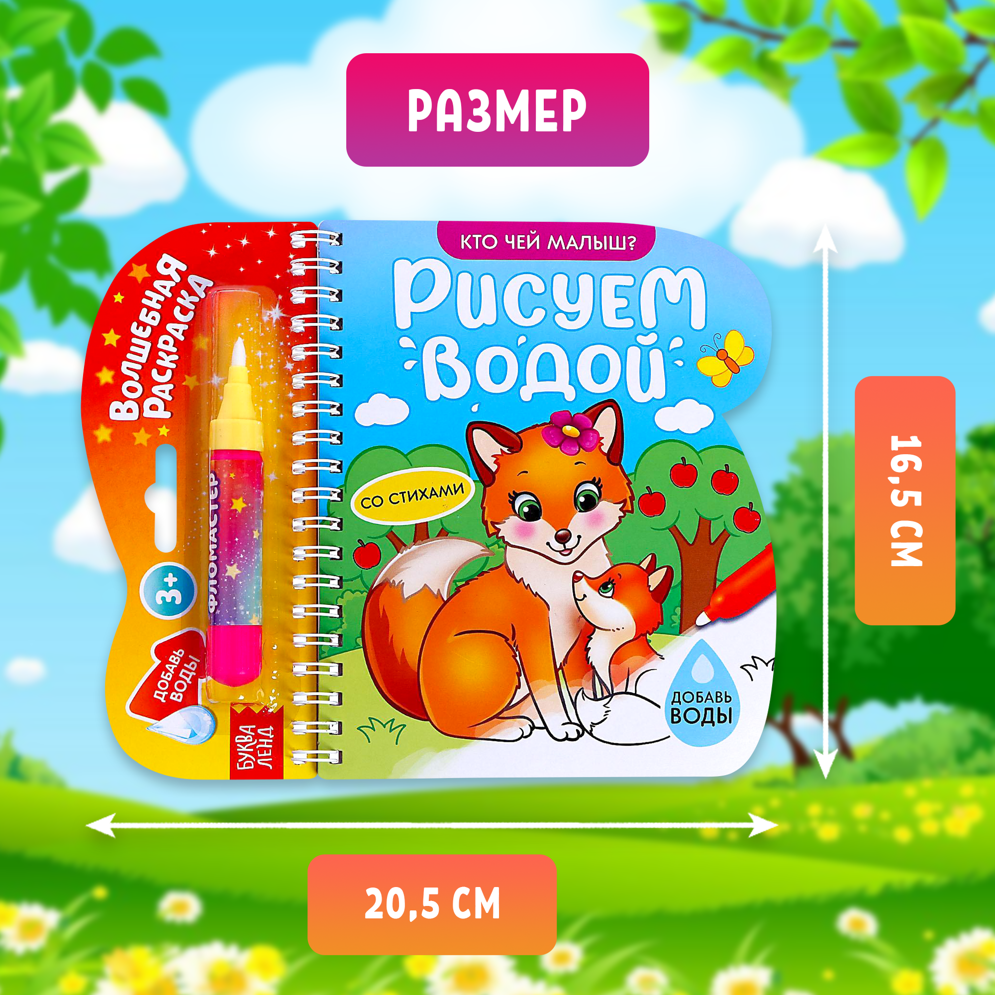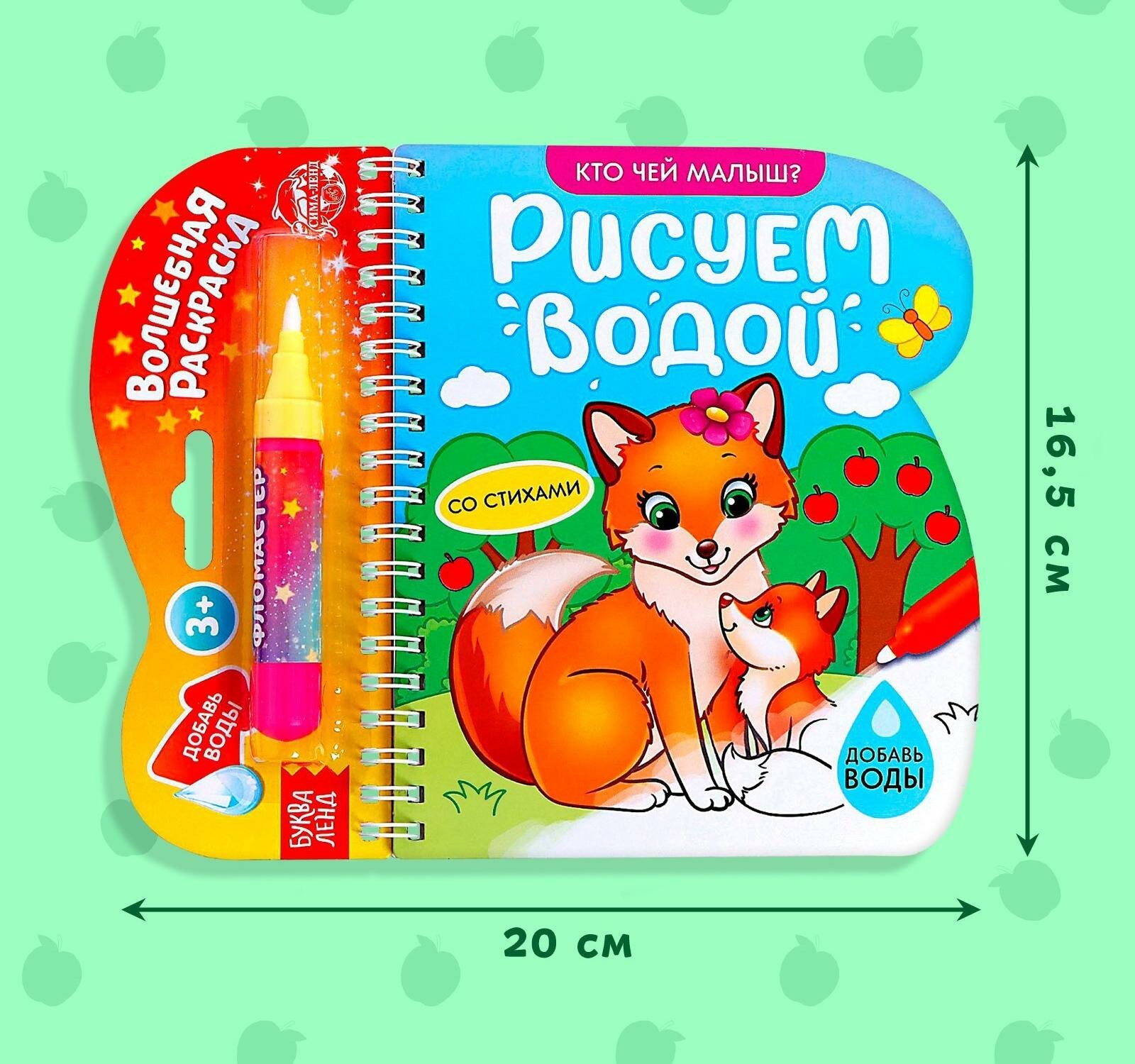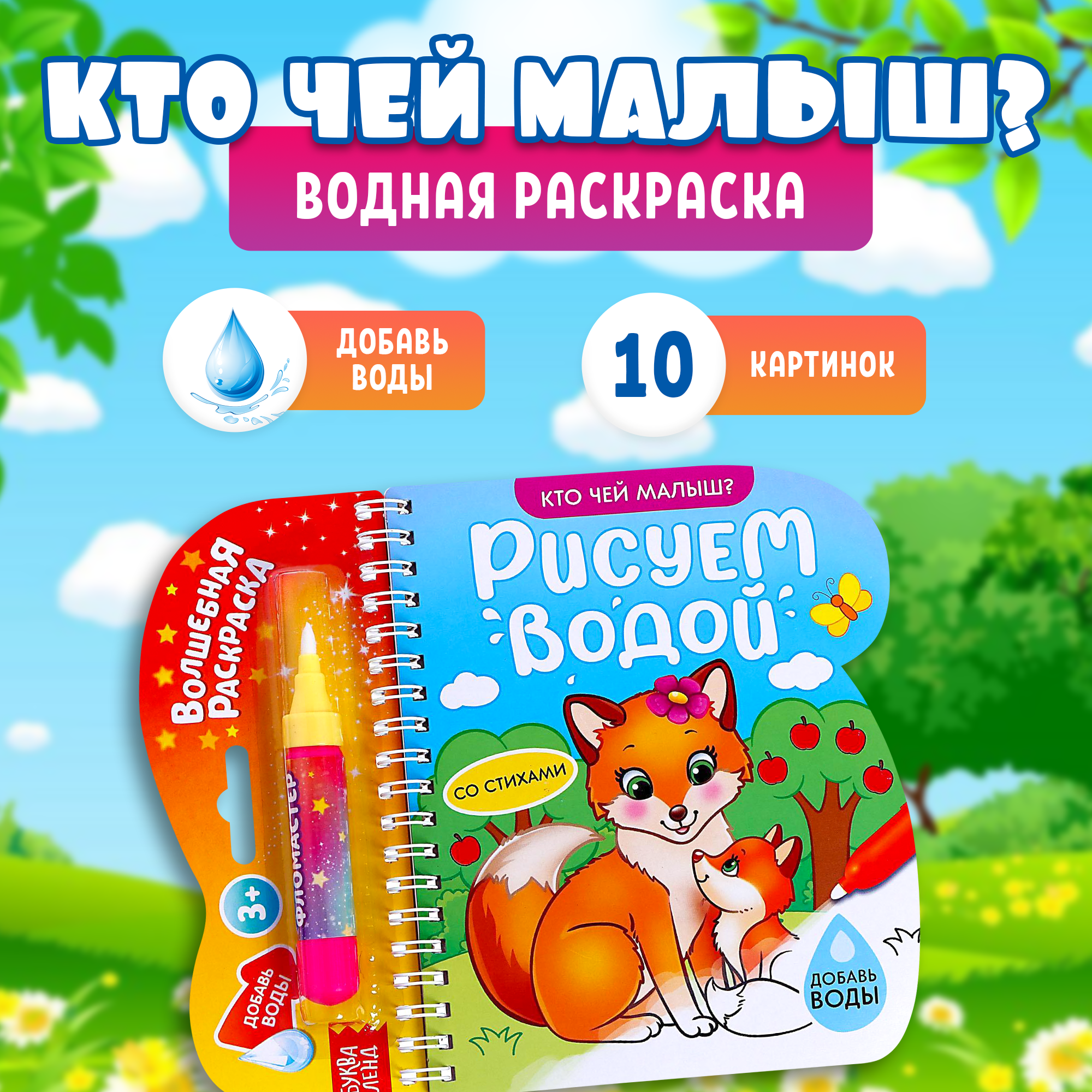 Купить Книжка- раскраска "Рисуем водой. Кто чей малыш?", 10 стр.
