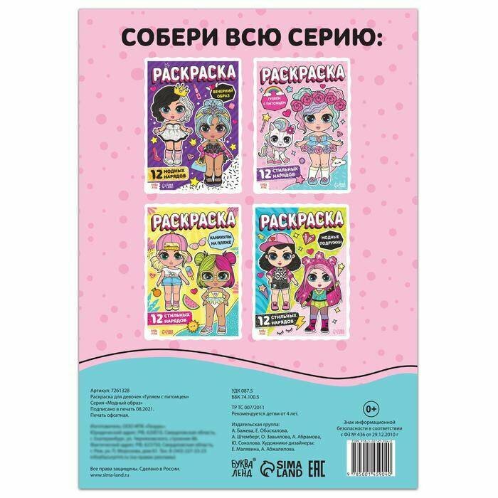 Купить Раскраска для девочек "Гуляем с питомцем", 16 стр., формат А4