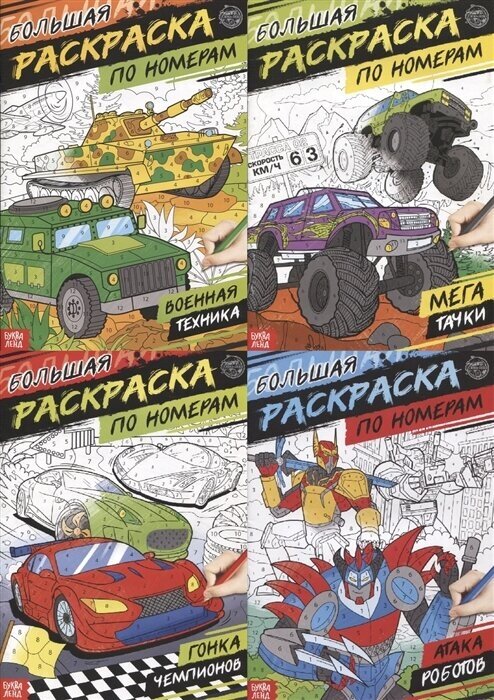 Купить Набор раскрасок по номерам «Для мальчиков», 4 шт., по 16 стр.