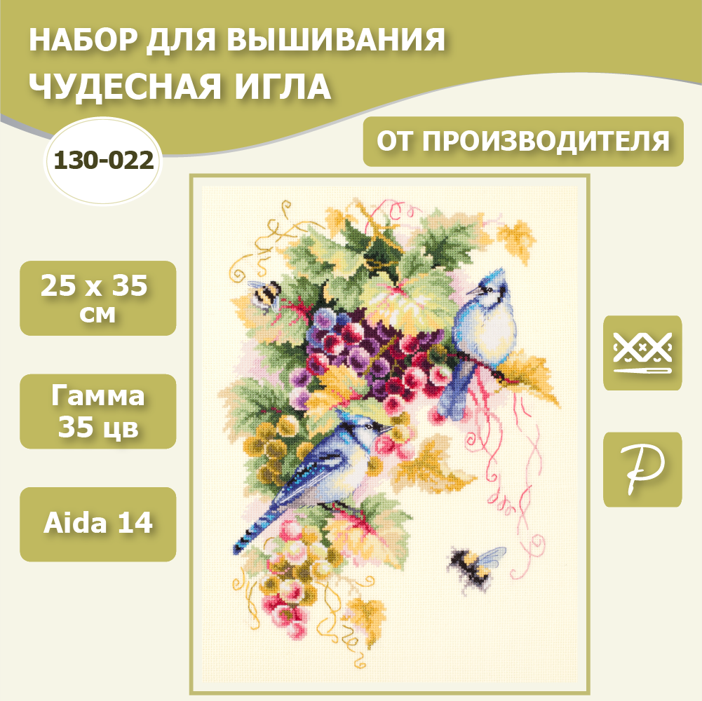 Набор для вышивания Чудесная Игла 130-022 "Сойки и виноград" 25*35см интересное: