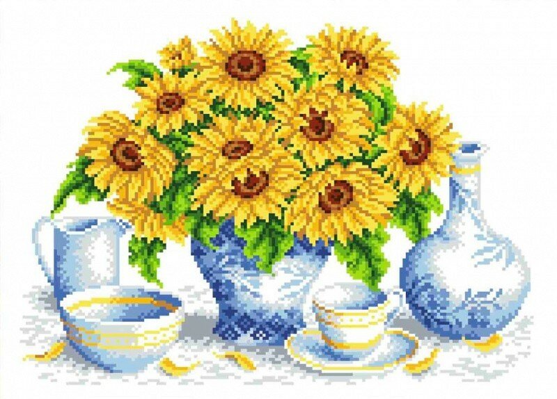"Подсолнухи в вазе"(цена производителя). Набор для вышивания крестом на канве с нанесенным рисунком