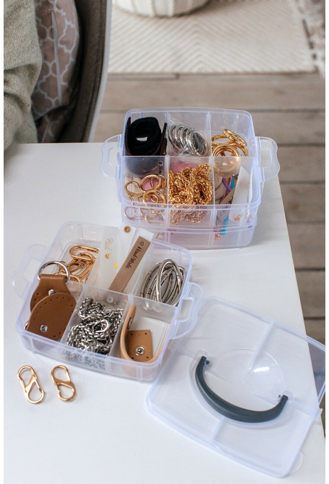 Органайзер для рукоделия, со съёмными ячейками, 3 яруса по 6 отделений, 15 × 16 × 12,5 см, с ручкой, цвет прозрачный