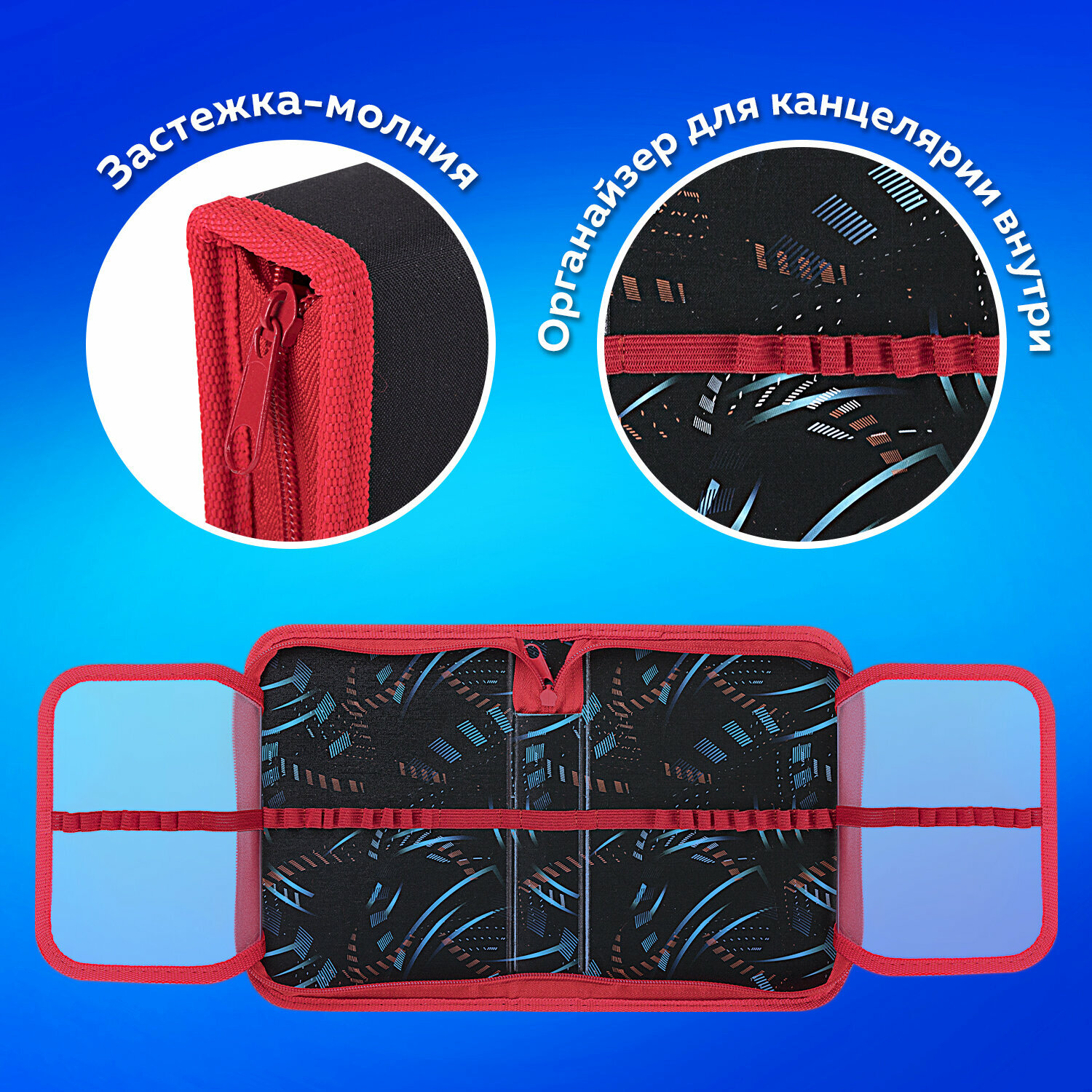 Пенал школьный для мальчиков для карандашей и ручек с 1 отделением, канцелярия для школы, 2 откидные планки, полиэстер, 20х14, Пифагор Boxing, 272289