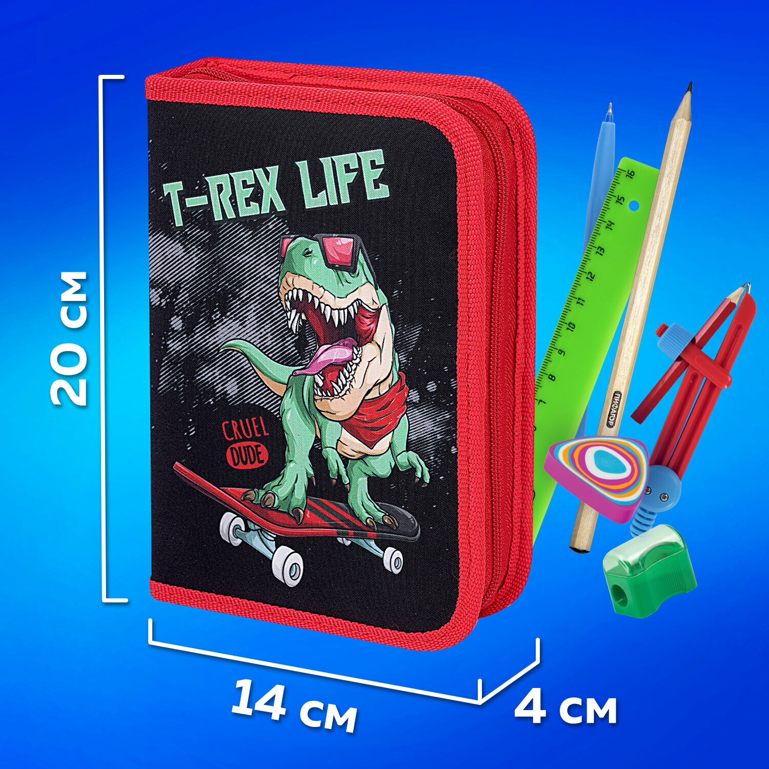 Пенал пифагор, 1 отделение 2 откидные планки, полиэстер, 20х14 см, T-Rex Life, 271513