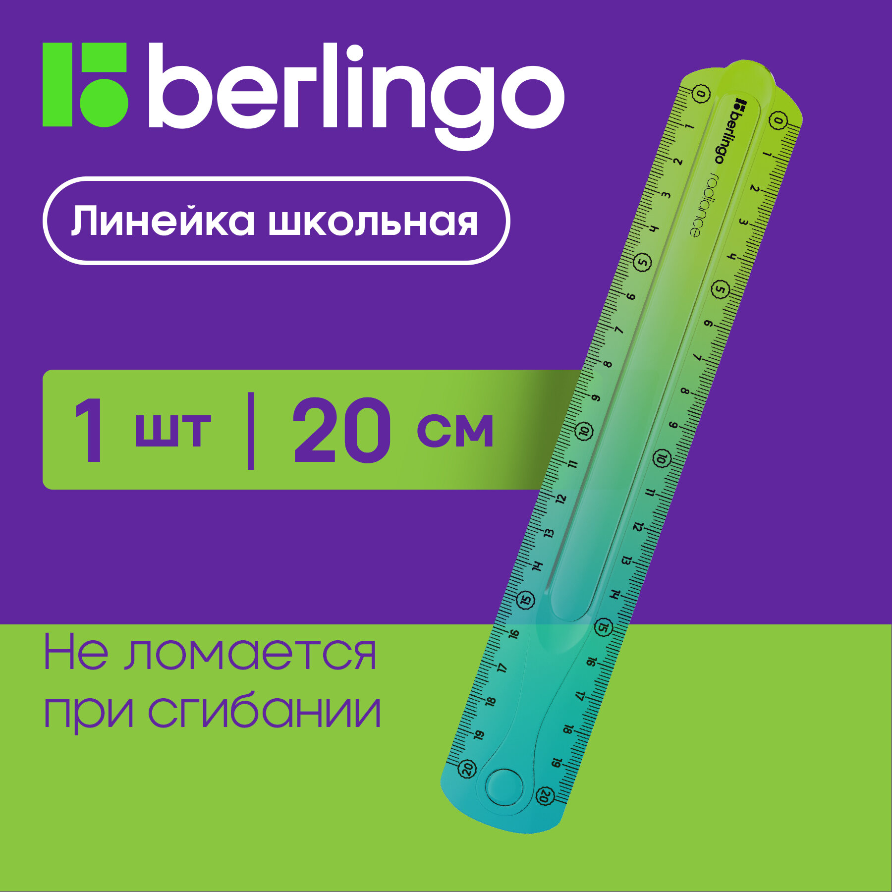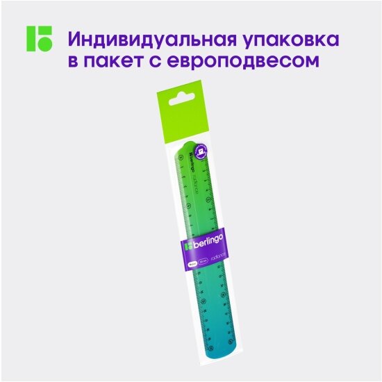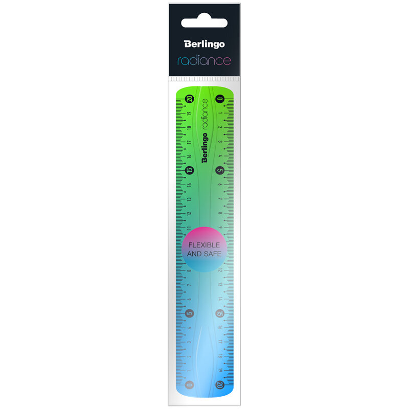 Линейка 20см Berlingo "Radiance", пластиковая, гибкая, голубой/зеленый градиент, европодвес, 289699