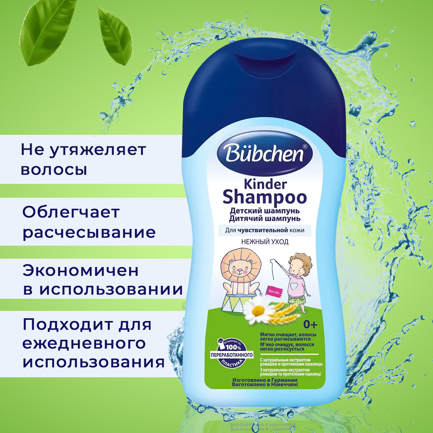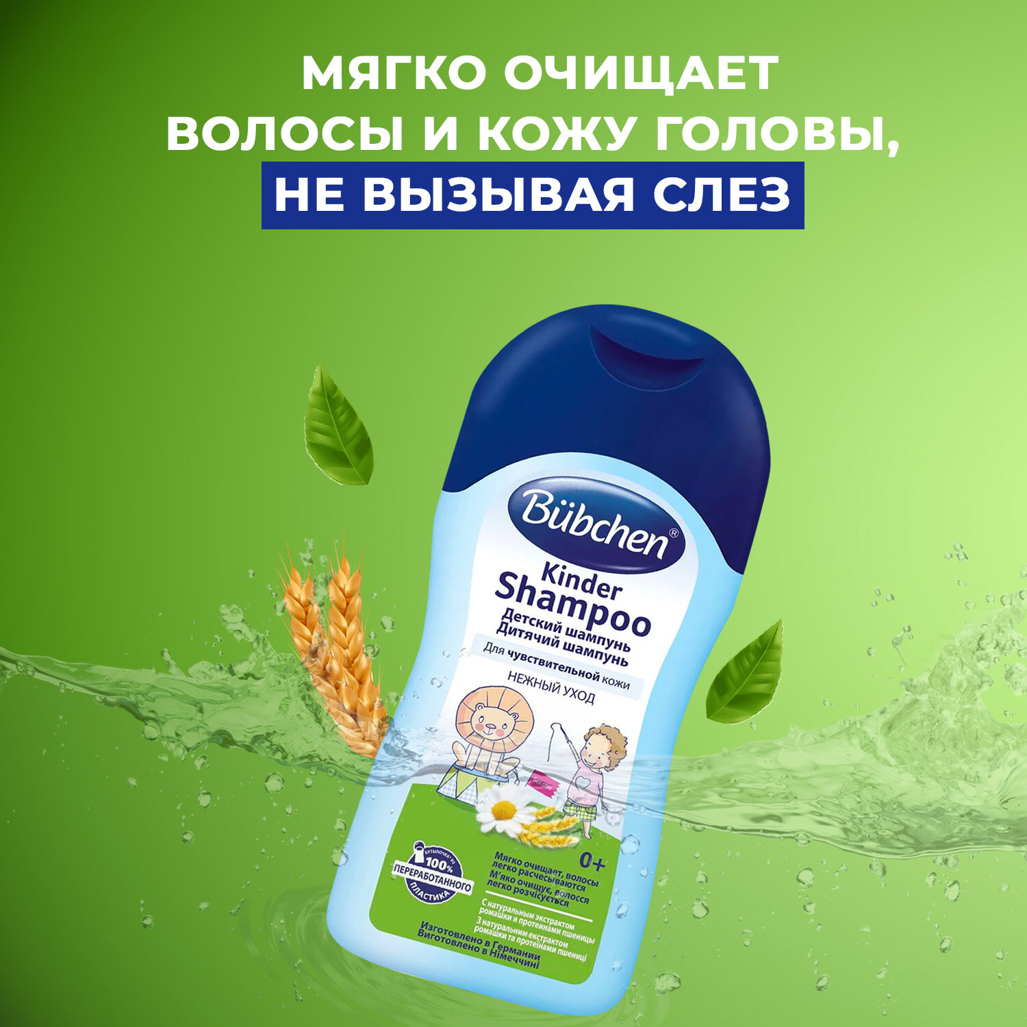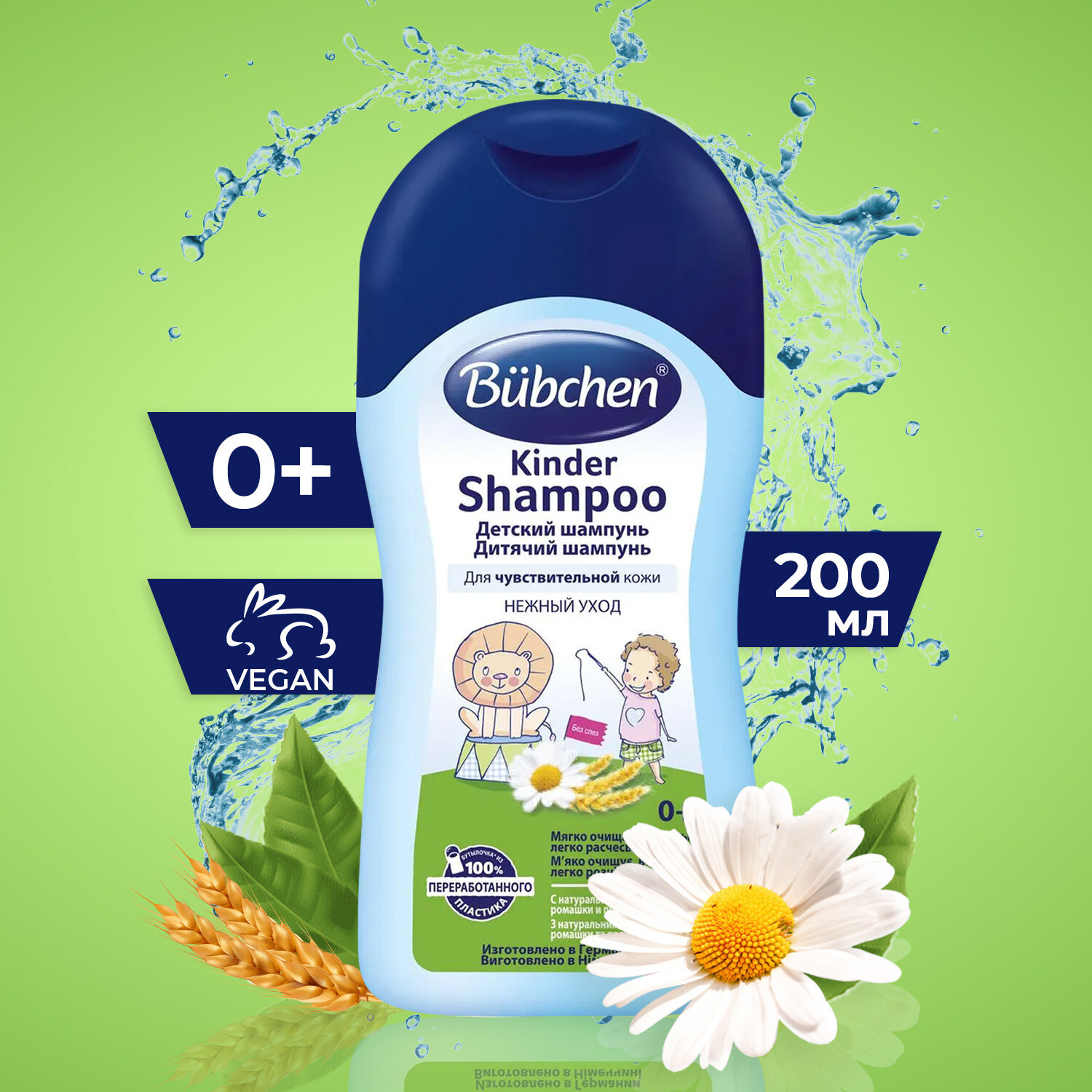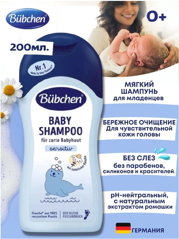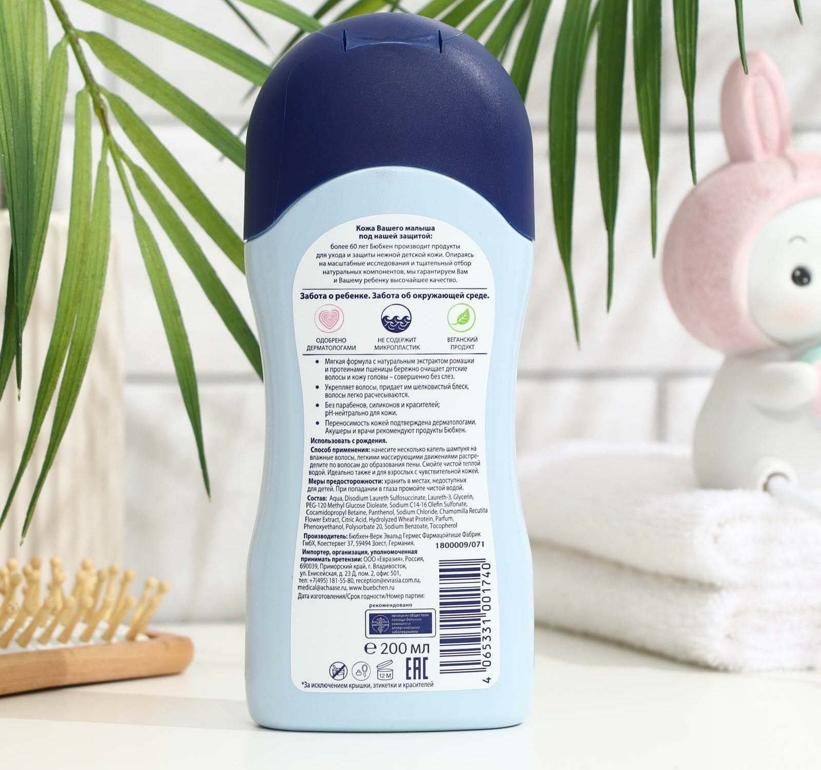 Шампунь детский для чувствительной кожи Bubchen с экстрактом ромашки и протеинами пшеницы, 200 мл